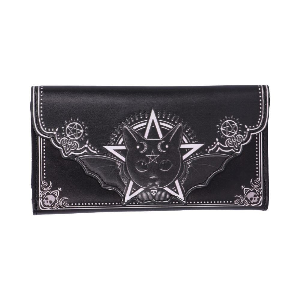 This Malpuss Embossed Purse is the union of good and evil and appears to be a vampire spirit, encapsulated by bat wings protruding from the cat’s back. Decorated in ornate silver detailing, this Malpuss Embossed Purse has multiple slots available for holding both your cards, cash and coins! Materials – Polyurethane Dimensions – L18.5 cm Brand – Nemesis Now Code – B5786U1