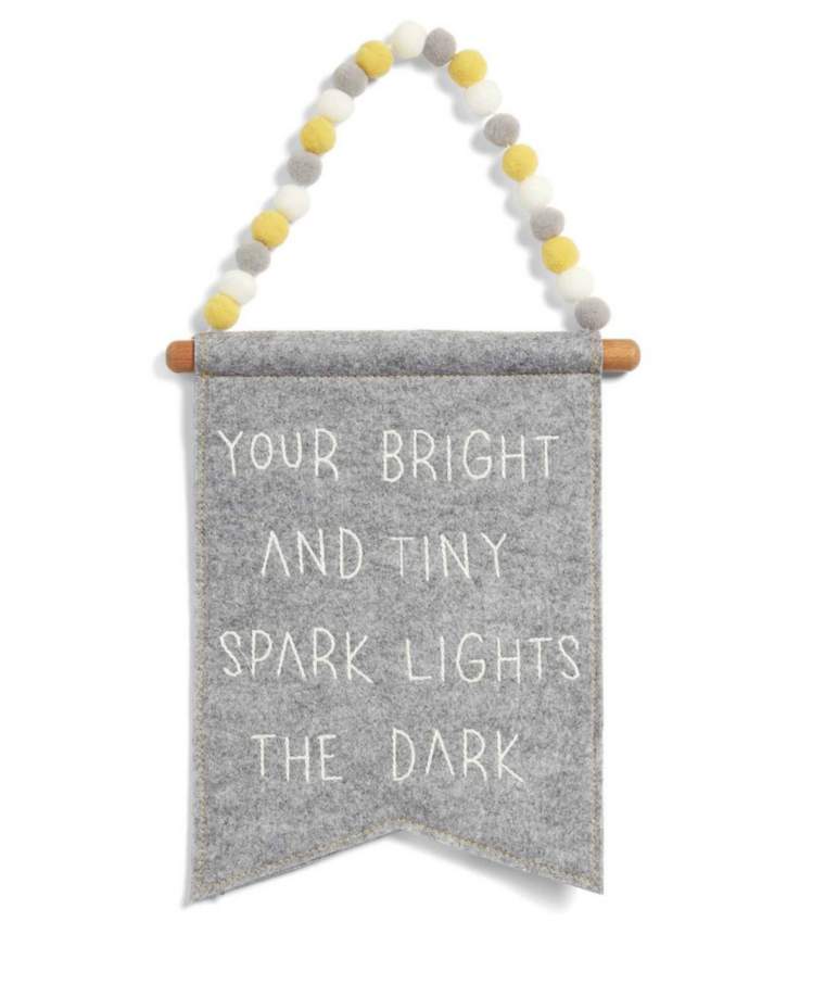 Take a trip through the clouds and beyond with our Dream Upon a Cloud nursery collection. Pops of yellow, textured embroidery and a variety of fabrics create a reassuringly soft collection.Your imagination can take you to the clouds, stars and moons. And we can help you get that little bit closer with our Dream Upon a Cloud bedding and accessories collection. Creating a dream-like nursery design, the collection combines pops of yellow set against a grey and white palette. With textured embroidery and a variety of fabrics, it’s a reassuringly soft trip through the clouds and beyond.FeaturesIf you’re looking for a way to inject some more personality into your nursery, wall art is ideal. Our 3D Cloud Flag is something a little different. With a distinct pom pom handle, and an inspiration quote realised in a stylish typography, it will definitely add some character to your room. Soft felt pom pom details with stylish typographical featureDimensions H 40 x W 21 x D 1.5cm. 0.06kg Composition Main: 100% Polyester. Frame: Beech Wood. Safety WARNING: KEEP AWAY FROM FIRE. This is not a toy. Keep out of reach of a child. Wipe clean only Mamas & Papas Wall Art – 3D Cloud Flag Take a trip through the clouds and beyond with our Dream Upon a Cloud nursery collection. Pops of yellow, textured embroidery and a variety of fabrics create a reassuringly soft collection.Your imagination can Mamas And Papas – Mamas & Papas Wall Art – 3D Cloud Flag – Fabric