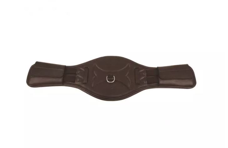 This high quality leather girth is ergonomically designed for comfort and freedom of movement.It includes elasticated straps and stainless steel buckles which are hidden beneath large leather keepers with hook and loop fastenings.A central D-ring allows the attachment of training aids.