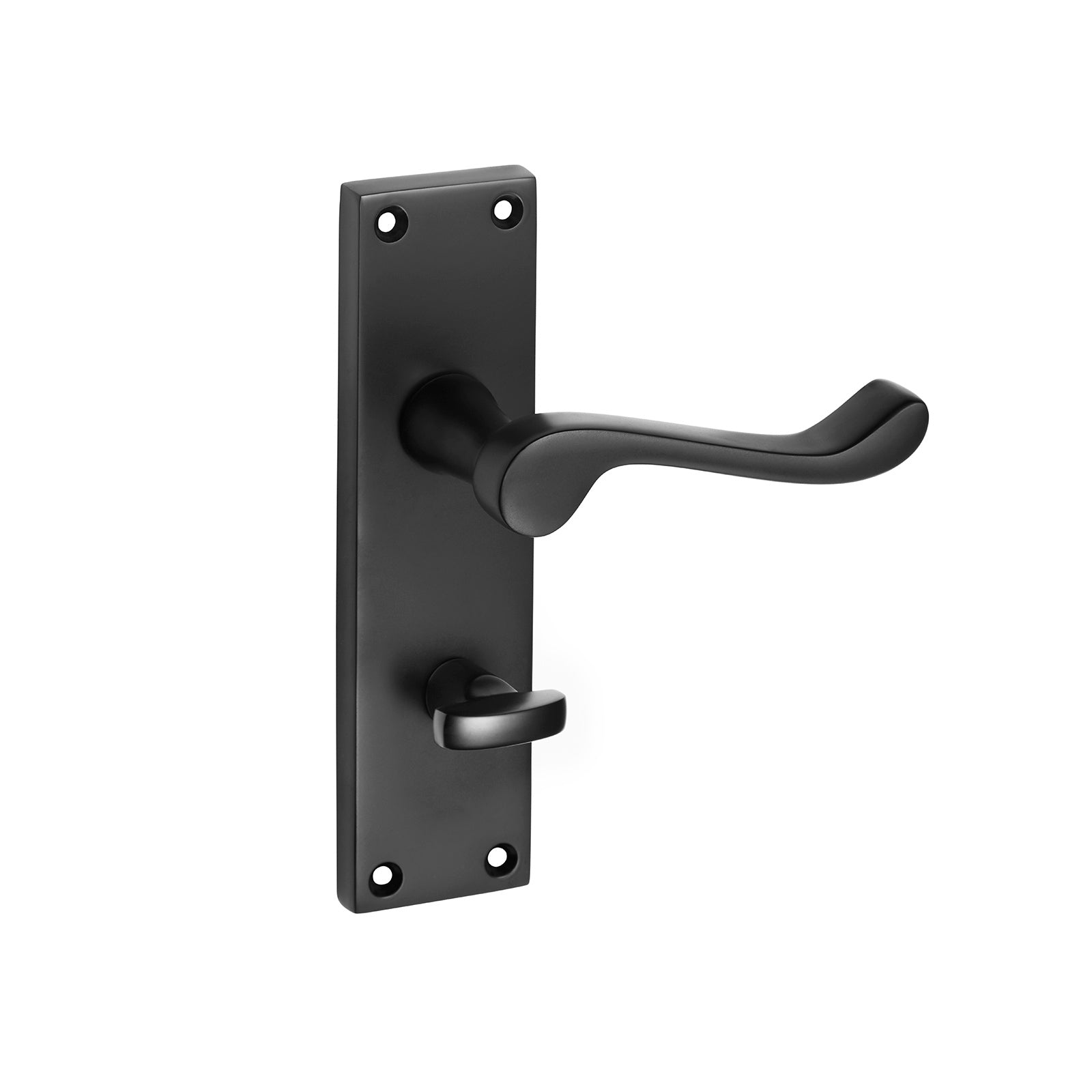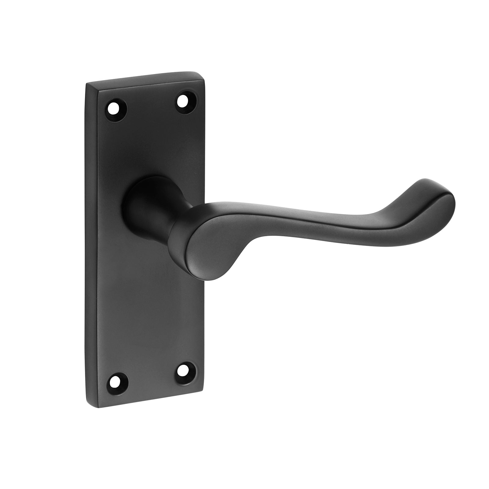 Specification: Matt Black Door Handles – Victorian Scroll Lever on Backplate Frelan Hardware