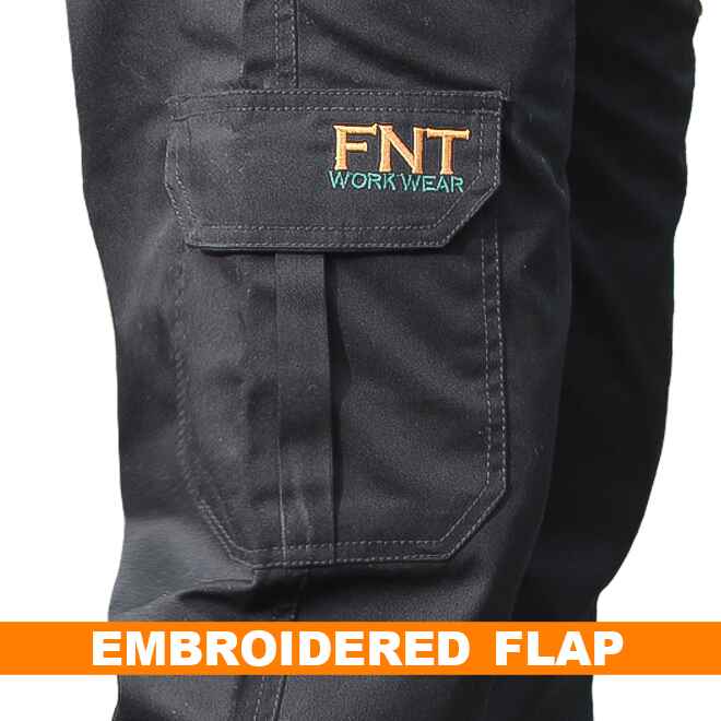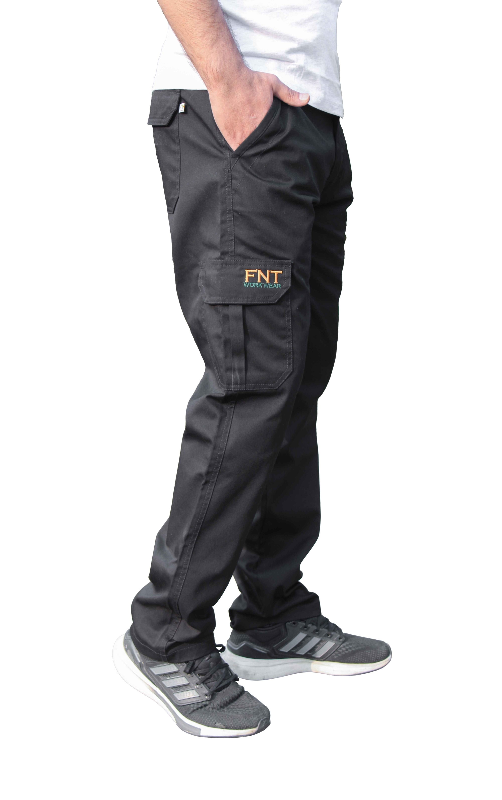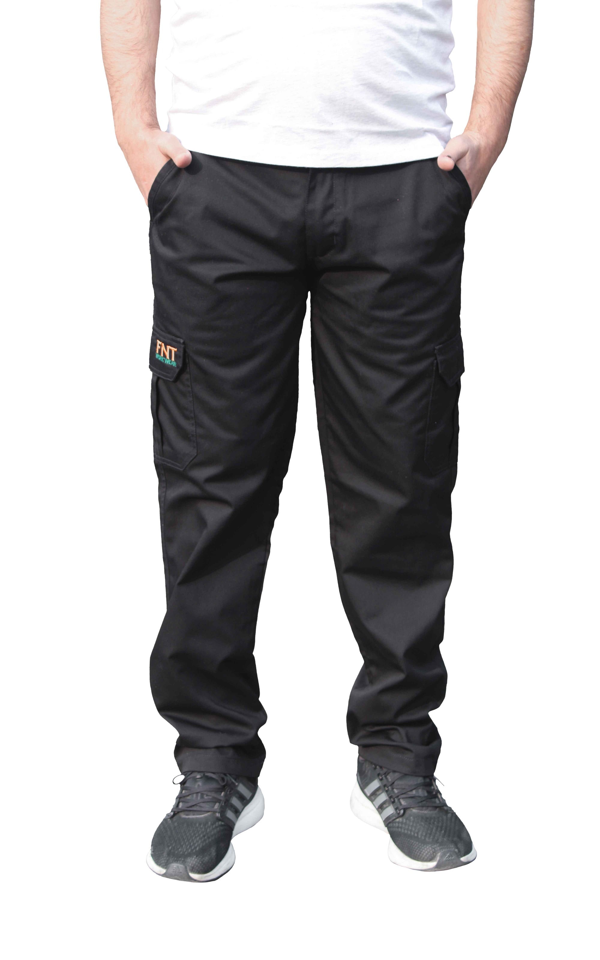 Men’s Cargo Work Trousers – Durable Multi Pocket Combat Style Comfort Black / 28″ / 29″ (Short) – FNT Workwear