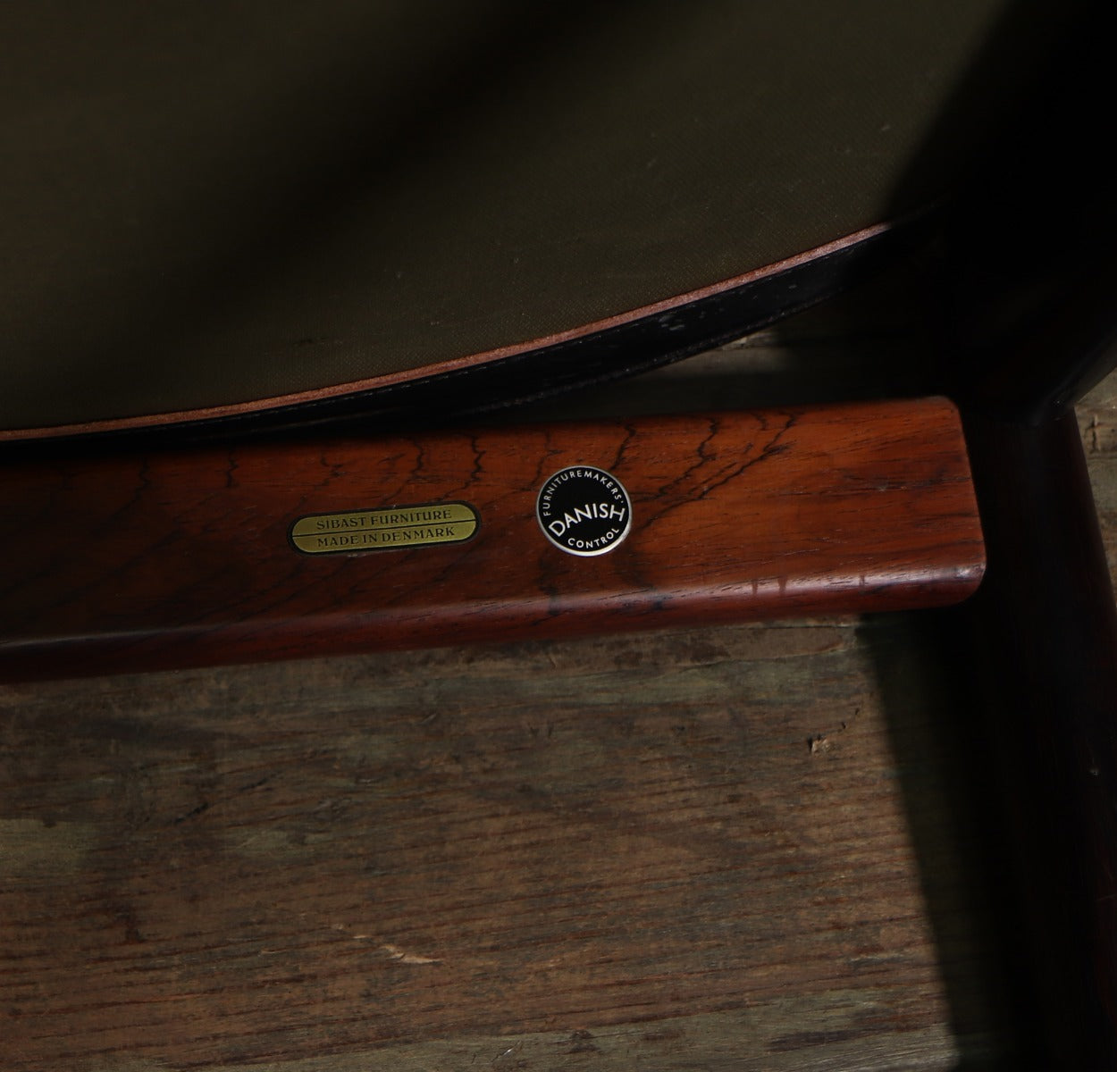 Set of four dining chairs, 2 carvers and 2 side chairs designed by Arne Vodder, manufactured by Sibast in Denmark circa 1950s.