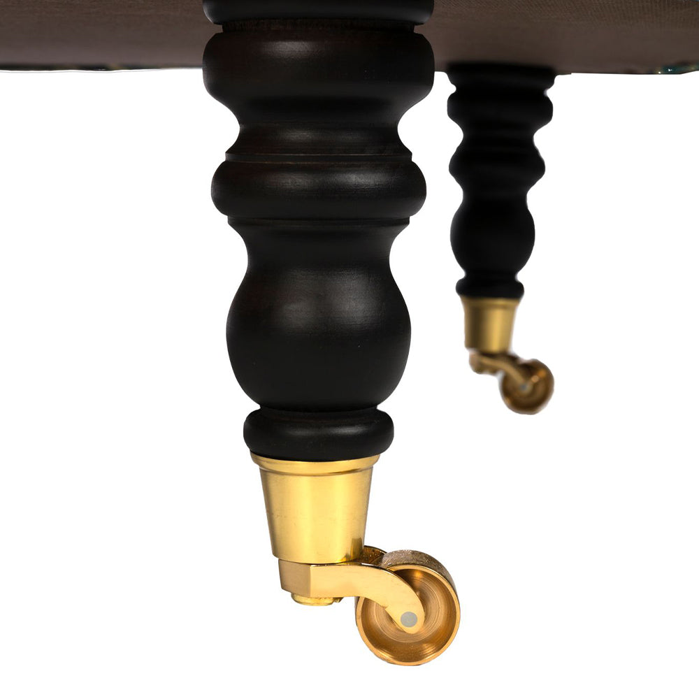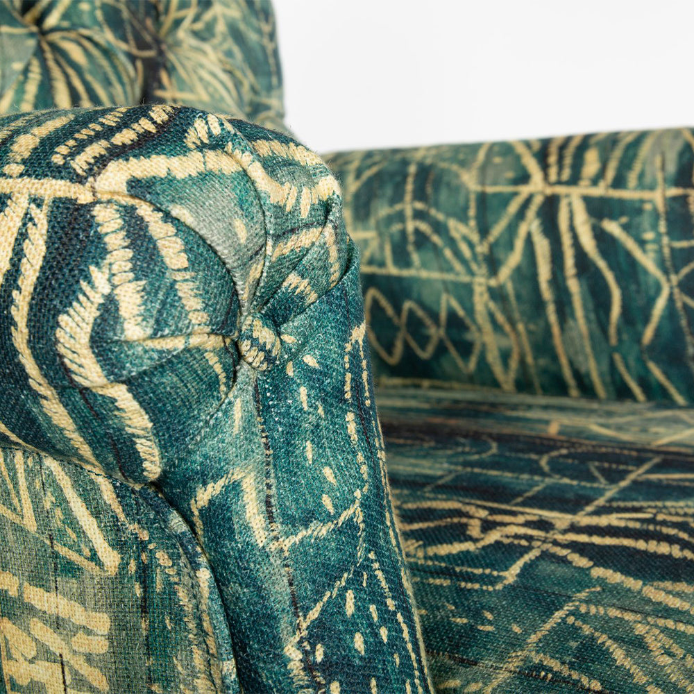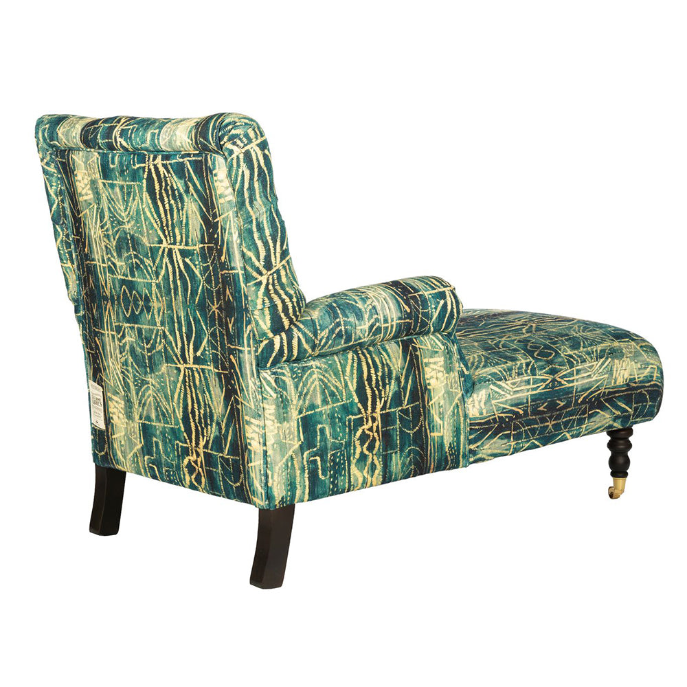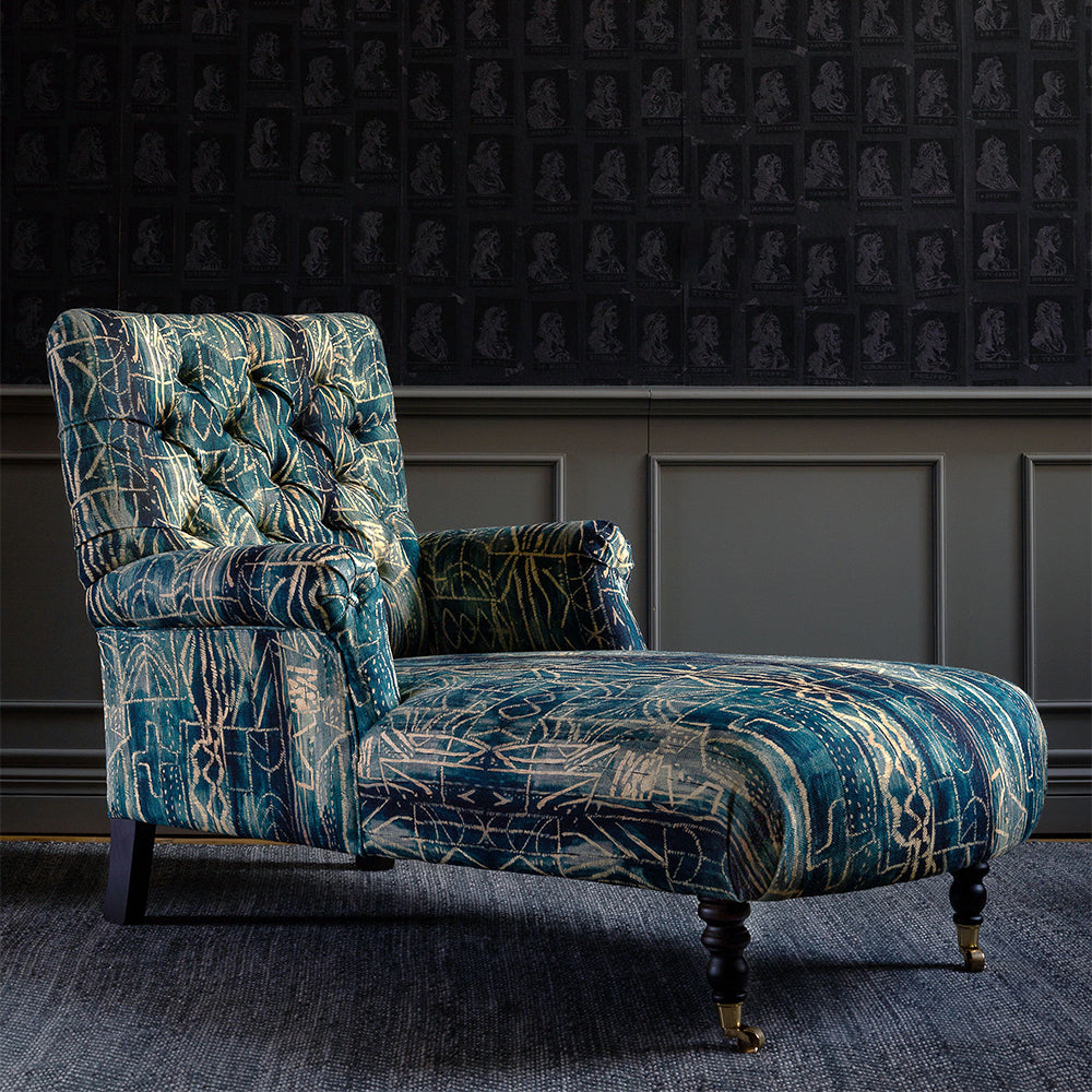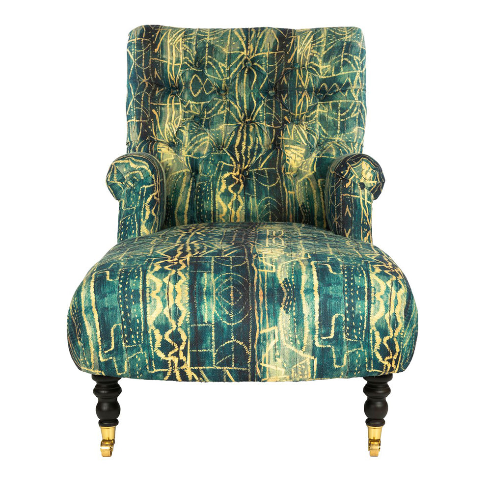 Mind the Gap Furniture collection – MADISON CHAISE in BAMBILEKE Mind the Gap’s collection of whimsical fabrics continues into this eclectic offering of furniture. This statement chaise features rollover arms and a sophisticated silhouette by the tufted backrest adding both elegance and function to your space. Crafted from beechwood and upholstered with a soft foam filling. Tapered grey washed legs and gold castors. BAMBILELE 100% linen in a rich cultural pattern, tones of Blue , Brown and yellow. All fabrics are sourced exclusively from European best suppliers and are printed in England. Our linens are stonewash finished to achieve a unique vintage effect. Due to the printing process colours may fade when exposed to direct sunlight. MADE IN ENGLAND Materials 100% linen , printed and stonewashed Castor antique brass legs Dimensions W 75 x D 145 x H 92 cm Fabric Riverside – 100% Linen 540 gms/ sqm Martindale Rub test 20 000+ Extra Info Dry clean only Delivery Bespoke Item 6-8 weeks from order