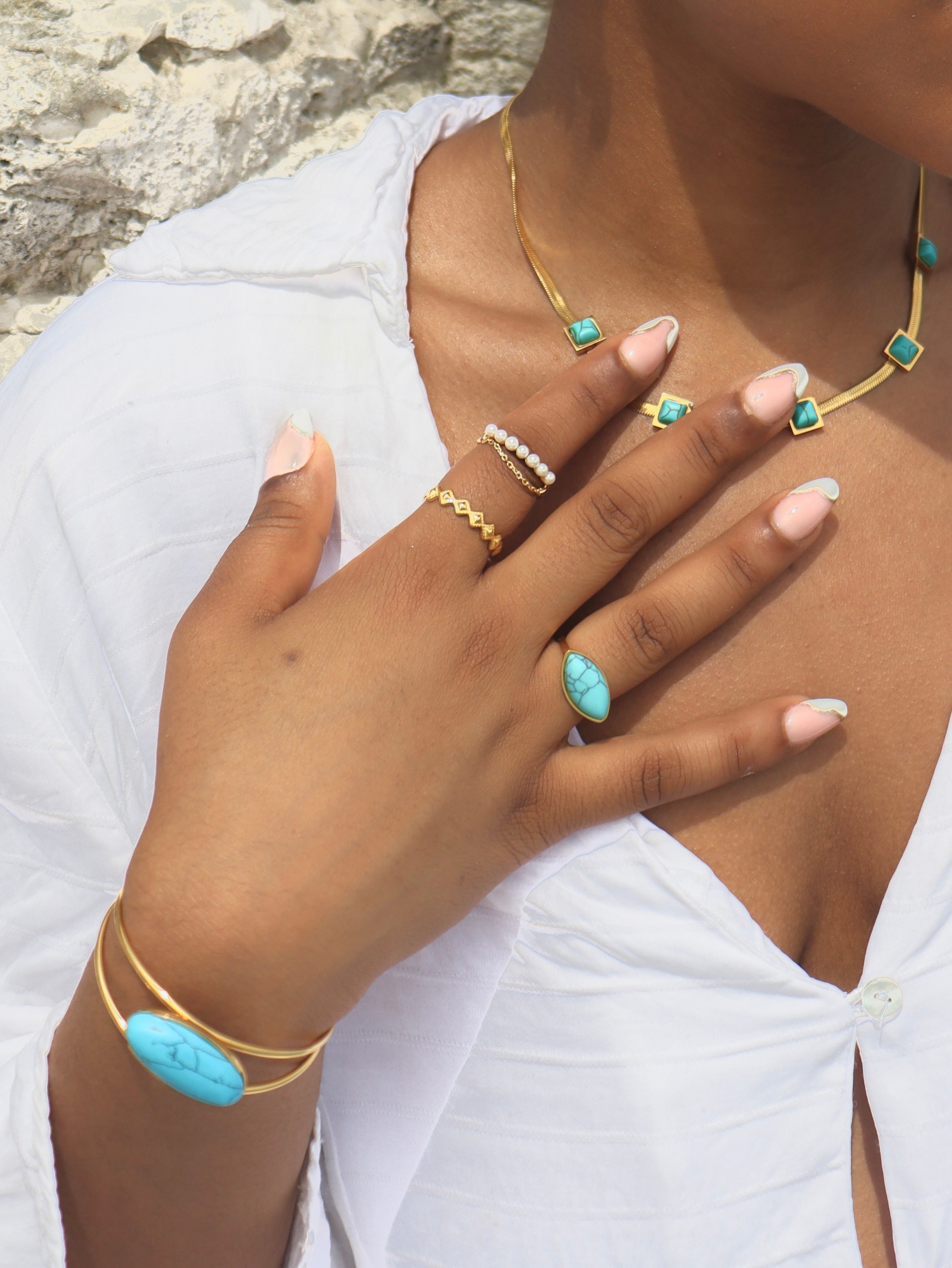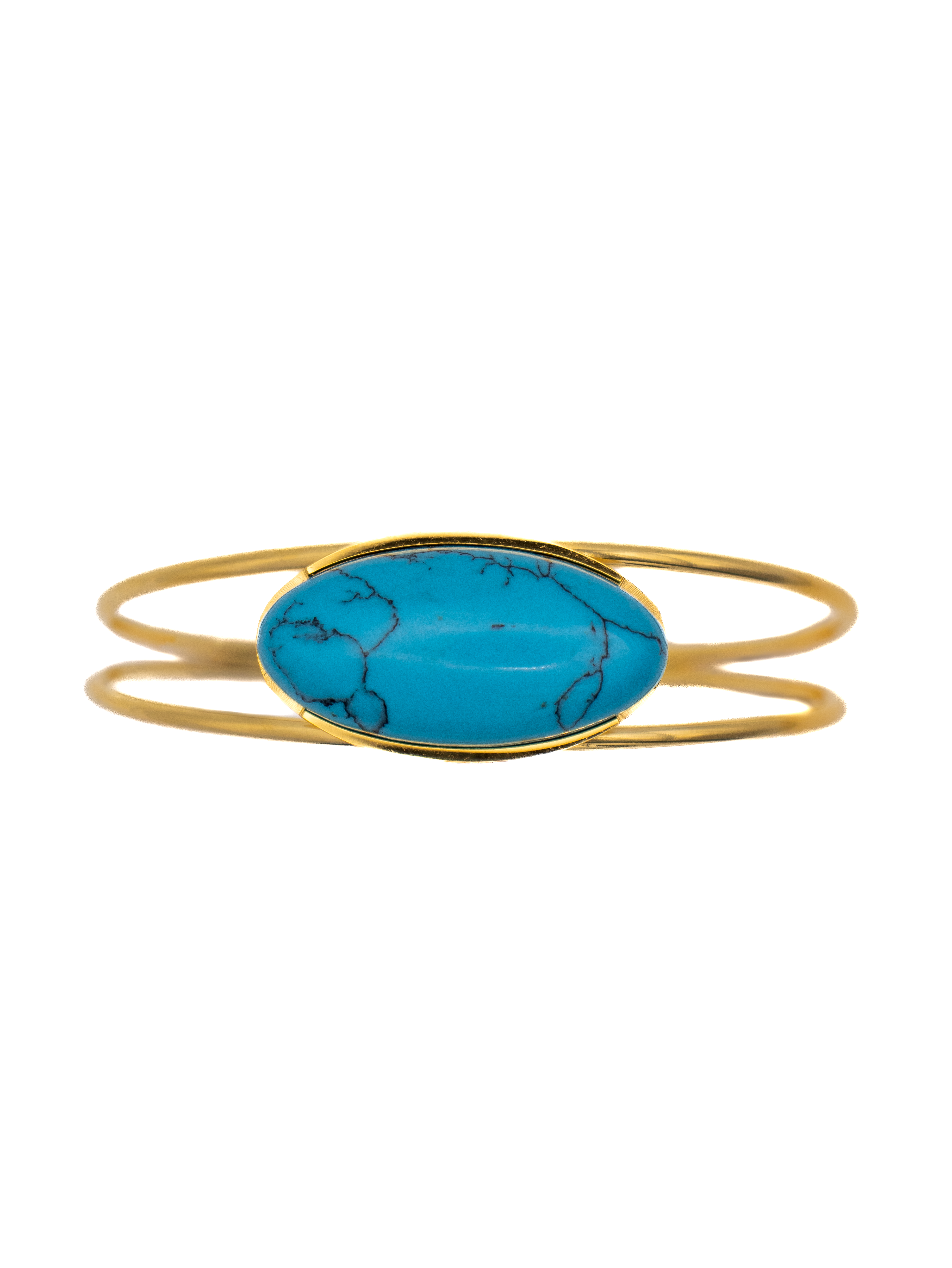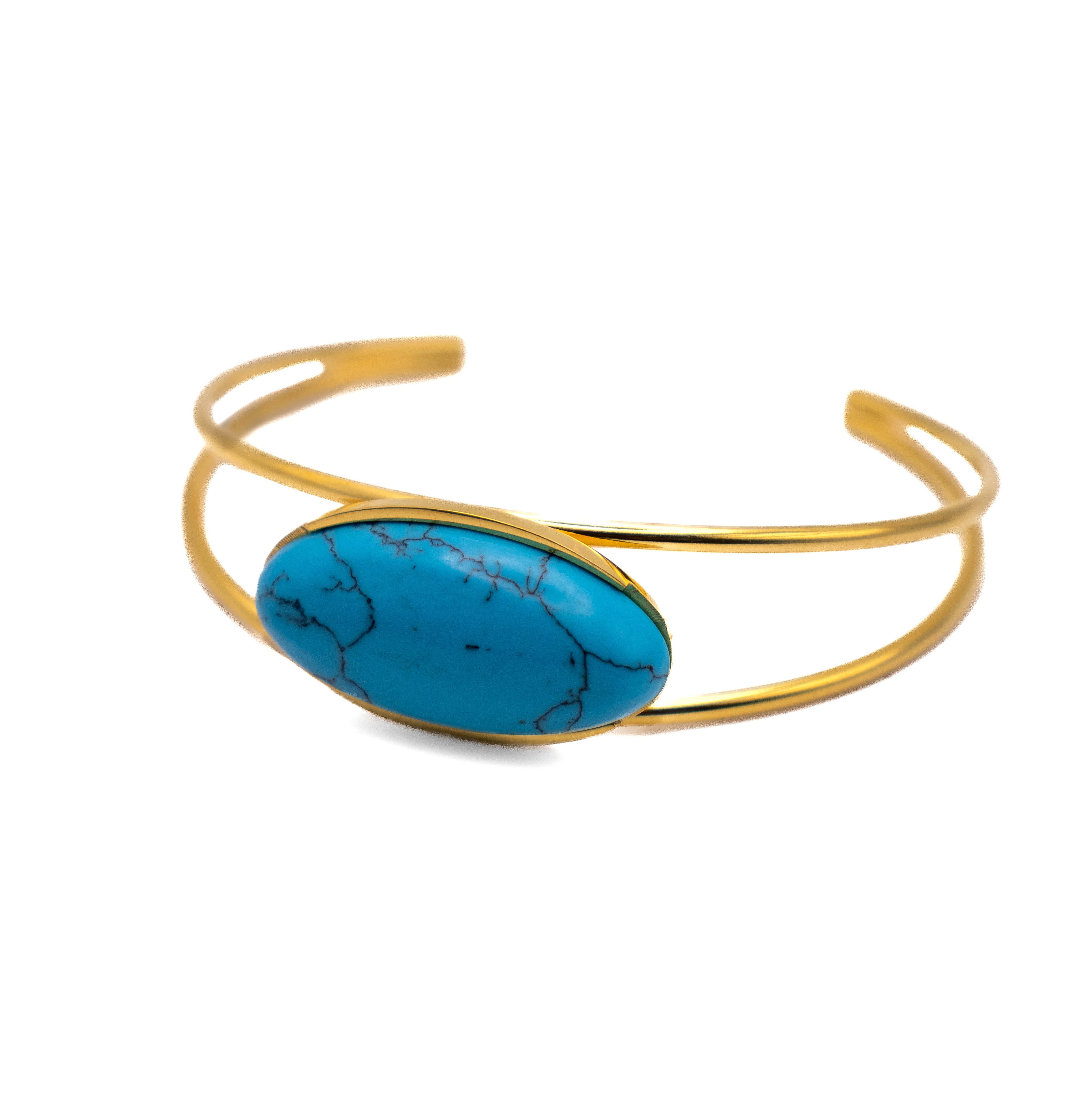 Gold Plated Bangle with Turquoise Natural Stone Diameter: 6.5cm Fully Adjustable – Mona Bangle – KIRO