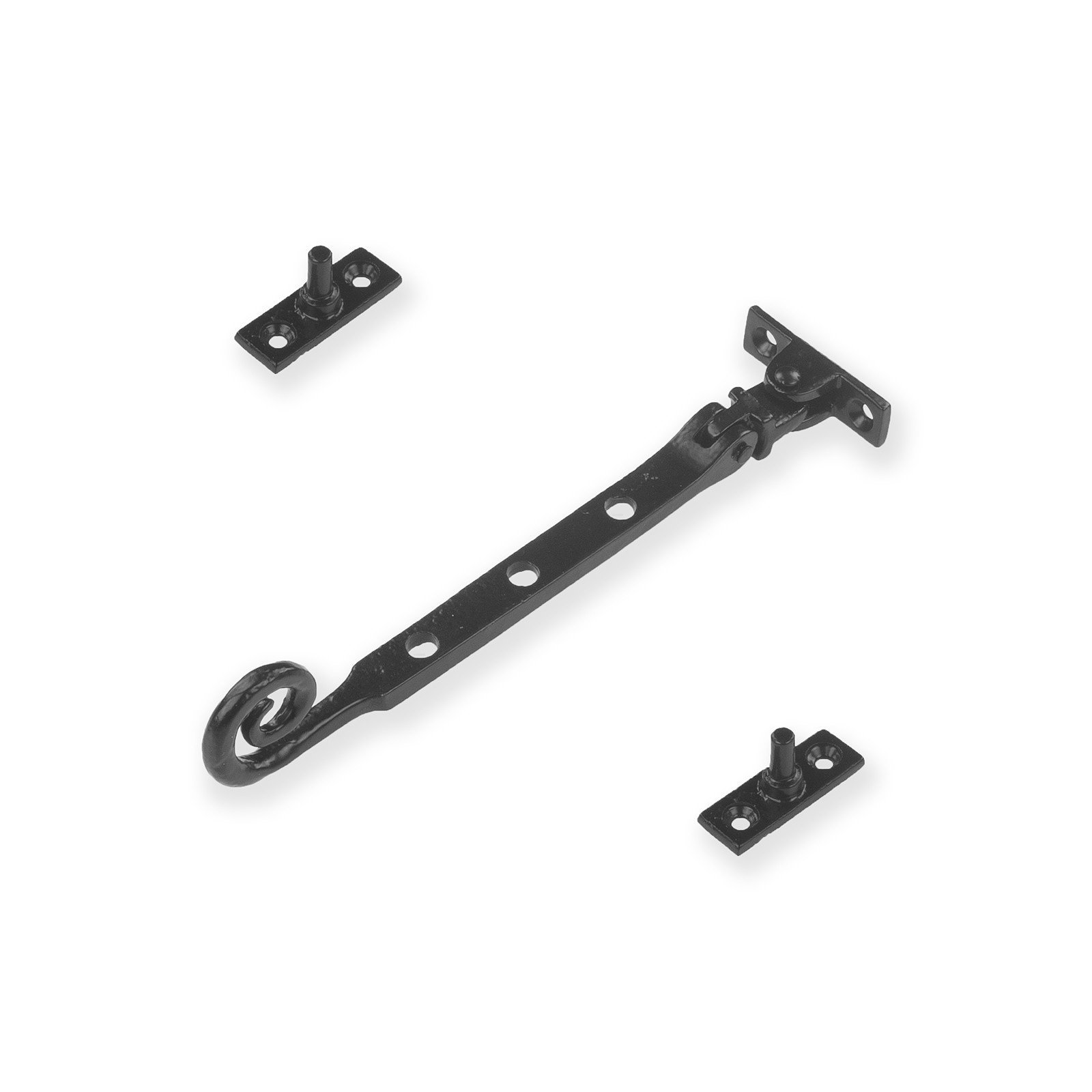 Make a statement with our monkey tail window furniture. Traditional yet quirky. An ideal complement to our Monkey Tail Lever Handles.Solid cast iron with a hardwearing black epoxy finishWindow stays are available in 3 sizes and are supplied with matching lugsThe casement fastener is designed for use on both right and left hand opening windowsCasement fastener is supplied with a receiver bridge for flush casements and a mortice receiver for recessedSee Dimensions for exact meaurementsAlso available in a Pewter finishåÊåÊClick to download dimensions in PDF format. åÊClick to download drawing file in DWG format.