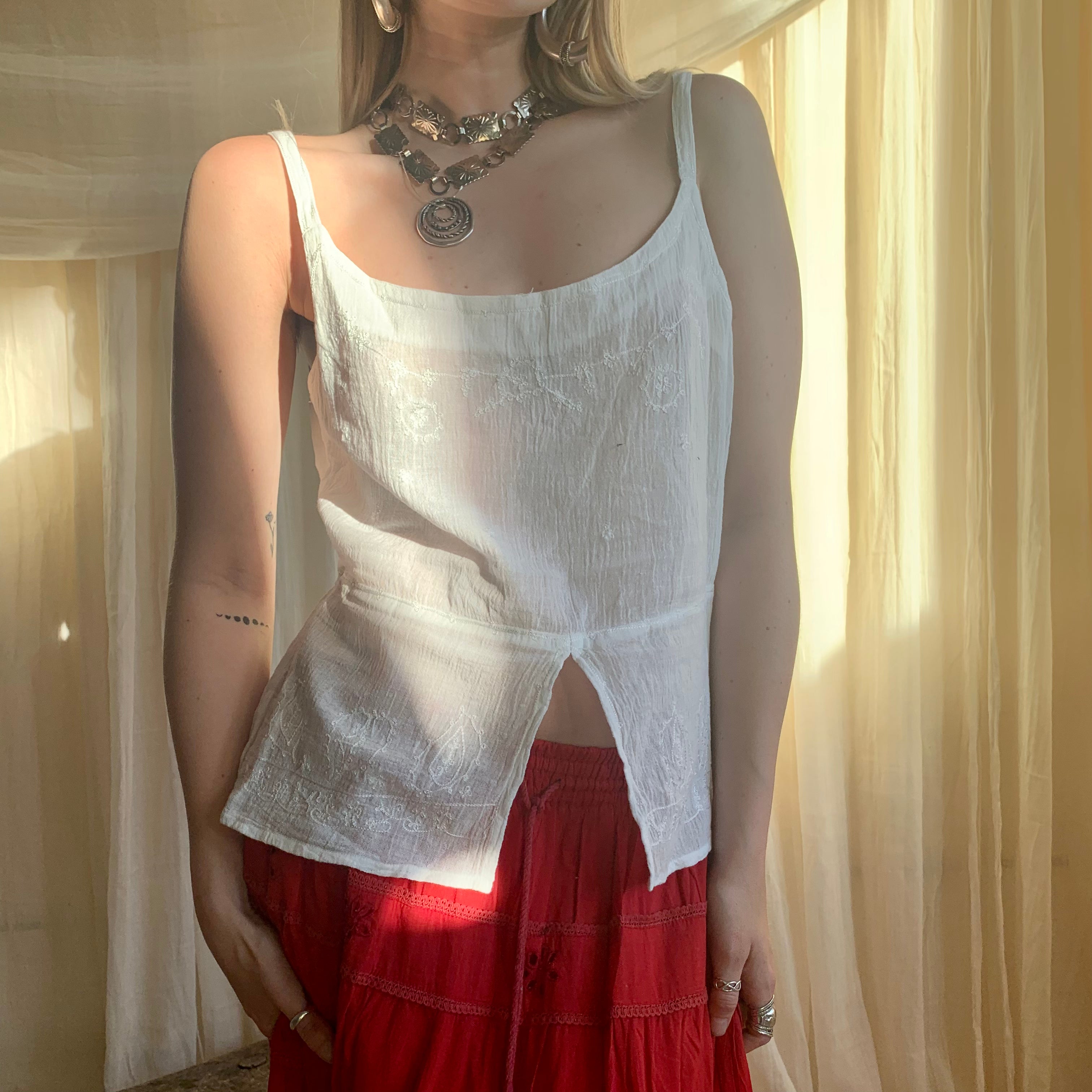 (Multi Colours) Cotton Embroidered Cut-out Vest Top L / White – Portobello Vintage Market