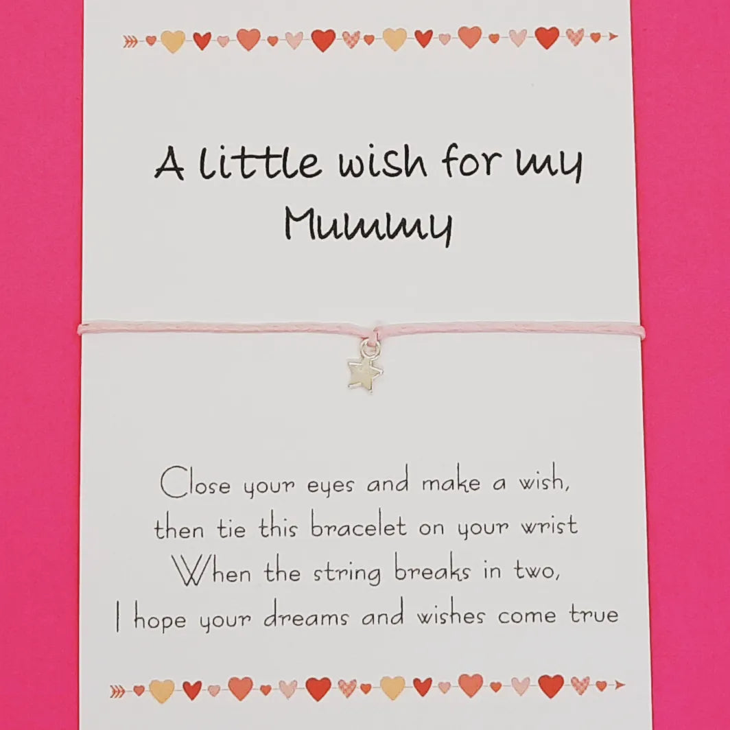 A Little Wish for Mummy Bracelet – Pink bracelet with silver star, Mummy wish bracelet. This is the perfect Mum’s gift set for any occasion! Buy now to get yours.