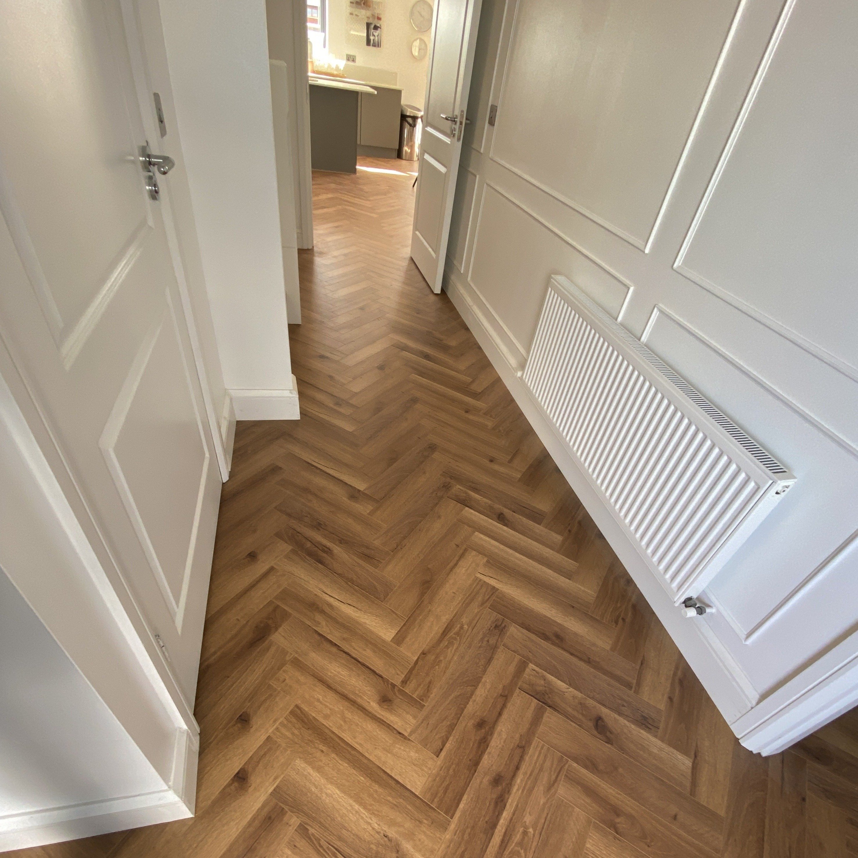 Specification: Oak Robust Fumed Herringbone Laminate – 12mm – Water & Scratch Resistant – Wood Floor Store