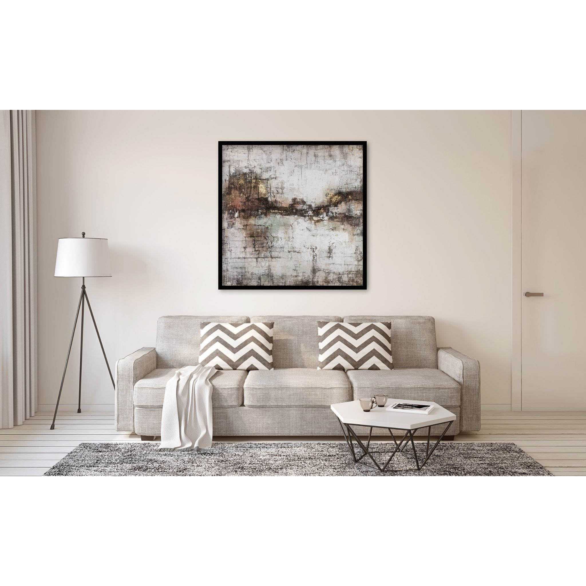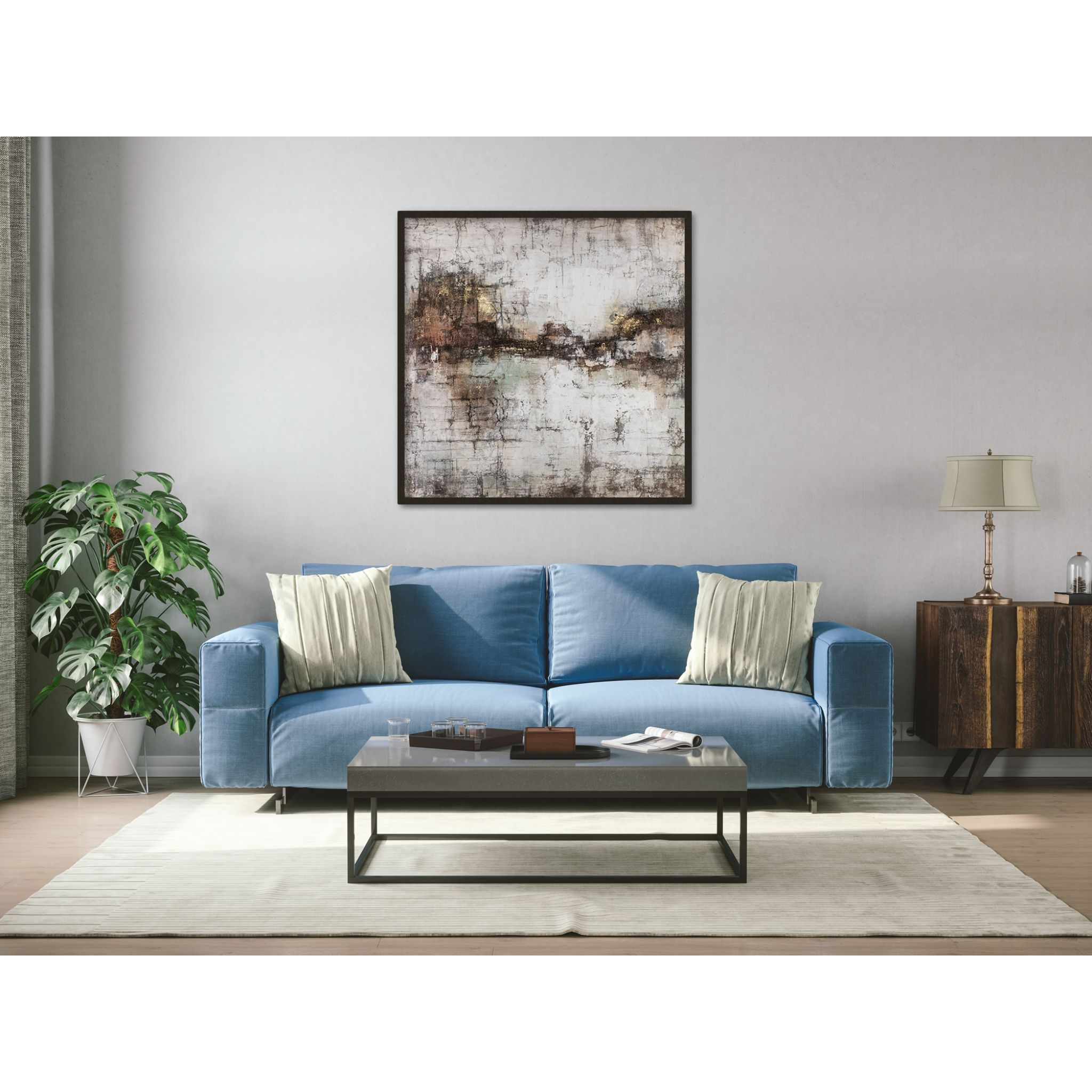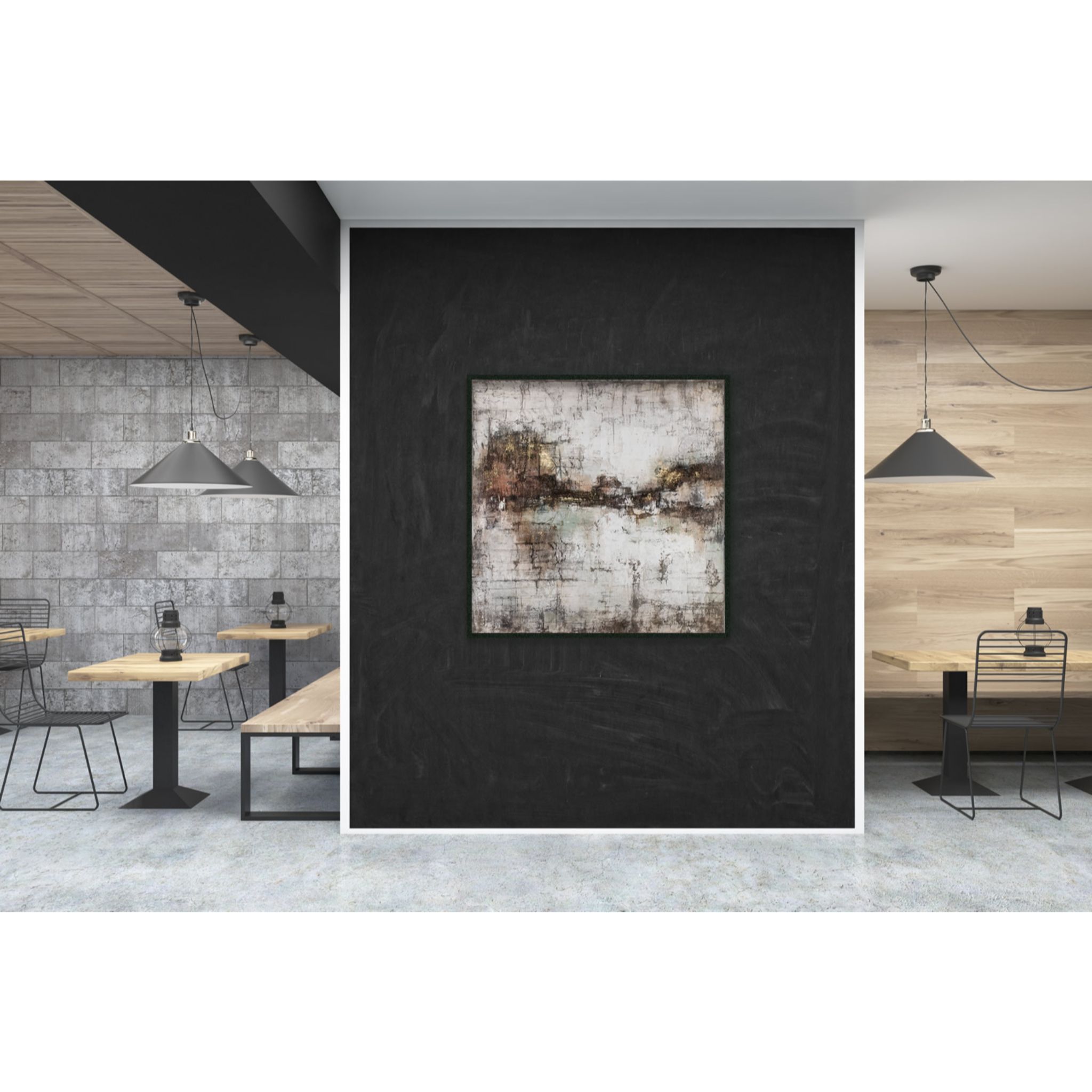 The Oil Painting on Canvas 10 is a large abstract painting. This Oil on canvas piece of art comes with a beautiful black frame. Whats more, this modern abstract painting is hand finished, with no two the same and beautiful palette knife textures.