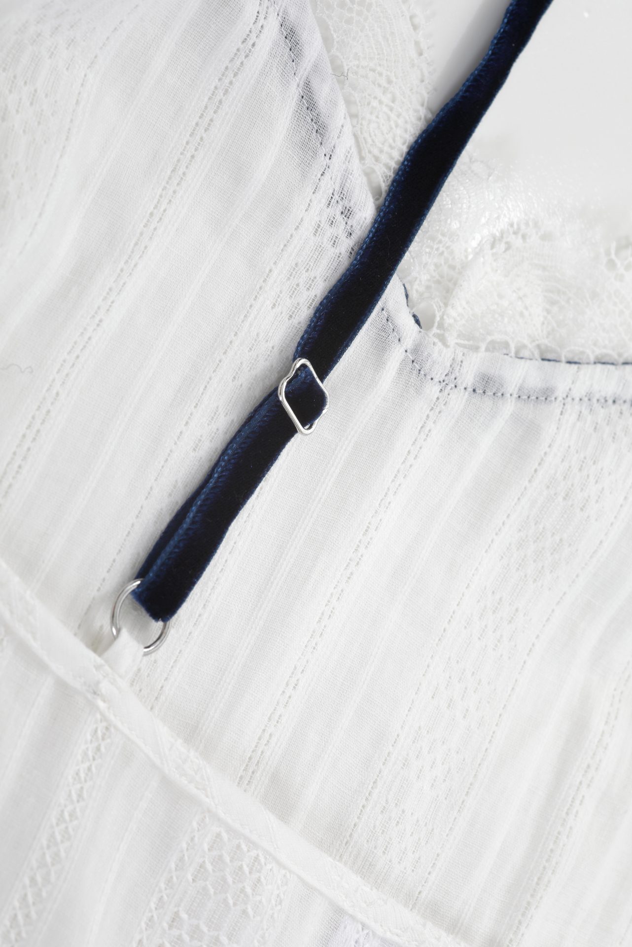 The V neckline with lace detail and the navy velvet adjustable straps, gives the top a beautiful shape.