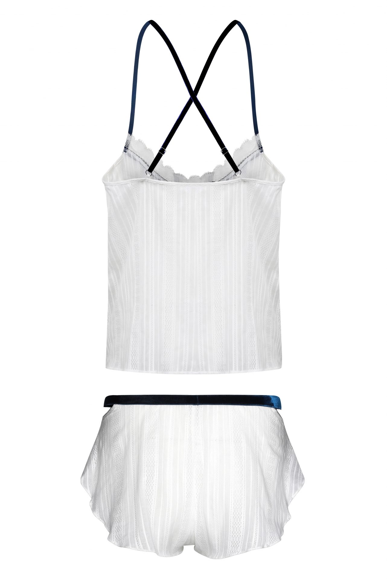 The shorts are a hybrid between French knickers and tap pants, with velvet ribbons for a sexy look with lateral cut-outs.