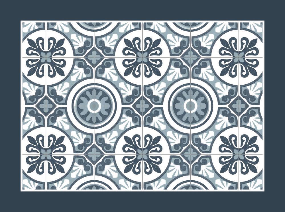 This mosaic vinyl table mat offers you a beautiful tabletop décor piece to your dining room or kitchen. The vinyl is very durable, easy to clean and waterproof.