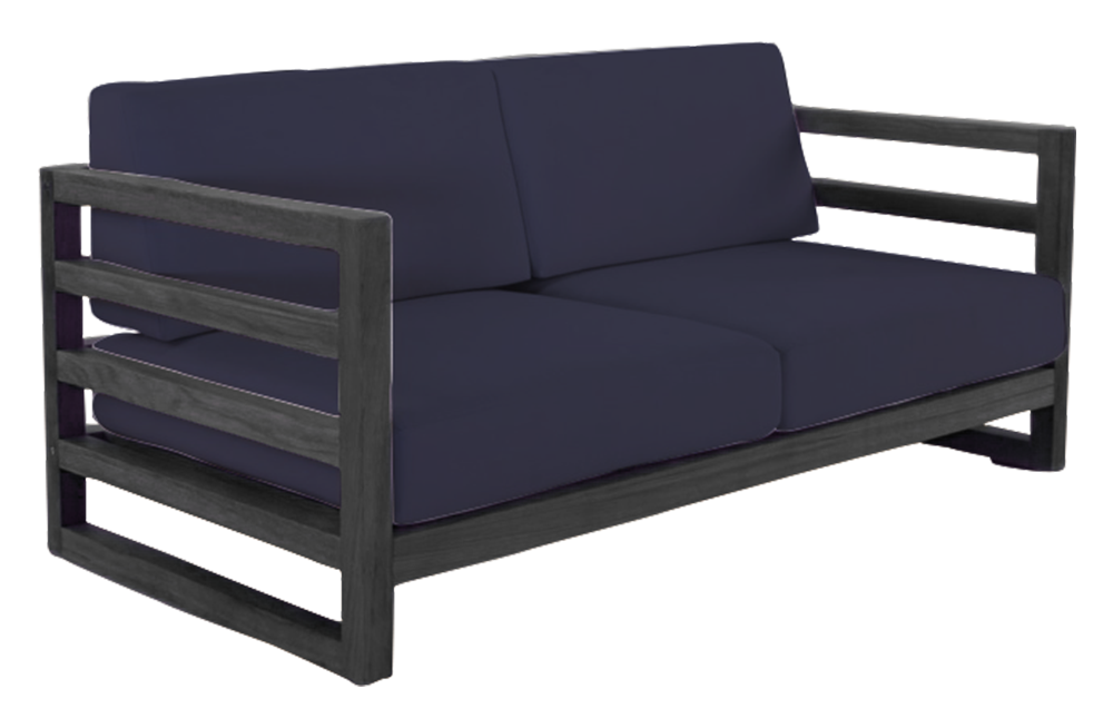 Outdoor Wooden 2 Seater Sofa Garden Furniture, Black Ash / Blue – Furnishop