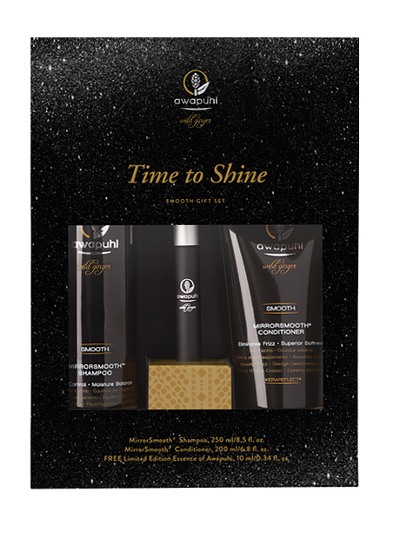Paul Mitchell Christmas Gift Set – Awapuhi Time To Shine This wonderful gift set is perfect for anyone will frizzy hair. It will help to tame control frizz whilst leaving hair perfectly smooth shiny. The gift set also has the beautiful ALL NEW LIMITED EDITION Essence of Awapuhi roll on perfume. Gift Set Includes:Paul Mitchell Awapuhi Mirrorsmooth Shampoo 250mlPaul Mitchell Awapuhi Mirrorsmooth Conditioner 200mlPaul Mitchell Limited Edition Essence Of Awapuhi Perfume 10ml ShampooRich foaming shampoo gently cleanses, restores moisture balance smooths the cuticle. Softens add shine, leaving hair silky frizz-free.Directions: Lather into wet hair rinse. Conditioner Silky conditioner controls frizz leaves hair luxuriously soft. Carefully chosen ingredients leave hair hydrated, instantly detangles leaves hair shiny with a reflective finish.Directions: Apply to clean, damp hair. Massage rinse Essence Of AwapuhiThis ALL NEW Limited Edition roll on fragrance is designed to leave you smelling absolutely beautiful for hours. It comes in a handy 10ml size bottle that is perfect to keep in your handbag or pocket.
