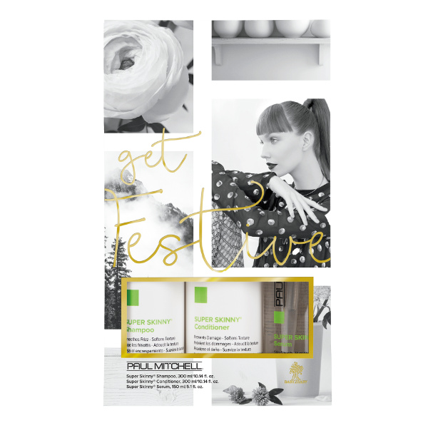 Paul Mitchell Christmas Gift Set – Get Festive This festive gift set is perfect for smoothing frizz. A beautiful trio to leave your hair looking beautifully amazing. The perfect gift for yourself or a loved one.Gift Set Includes:Paul Mitchell Super Skinny Shampoo 300mlPaul Mitchell Super Skinny Conditioner 300ml Paul Mitchell Super Skinny Serum 150mlShampooThis brilliant super skinny shampoo will help to deliver smoother texture with reduced drying time.Directions: Massage into wet hair rinse. Repeat if necessary.ConditionerLeaves hair smooth soft every time you condition. The super skinny complex helps reduce drying time for faster styling.Directions: Cleanse with super skinny shampoo. Apply a small amount to clean , damp hair rinse. Style as desired. SerumStyle hair in less time. Super skinny complex helps smooth hair fast with reduced drying time. Helps control frizz adds shine. Directions: Rub one pump into hands apply to clean, damp hair. Style as desired. Very concentrated.
