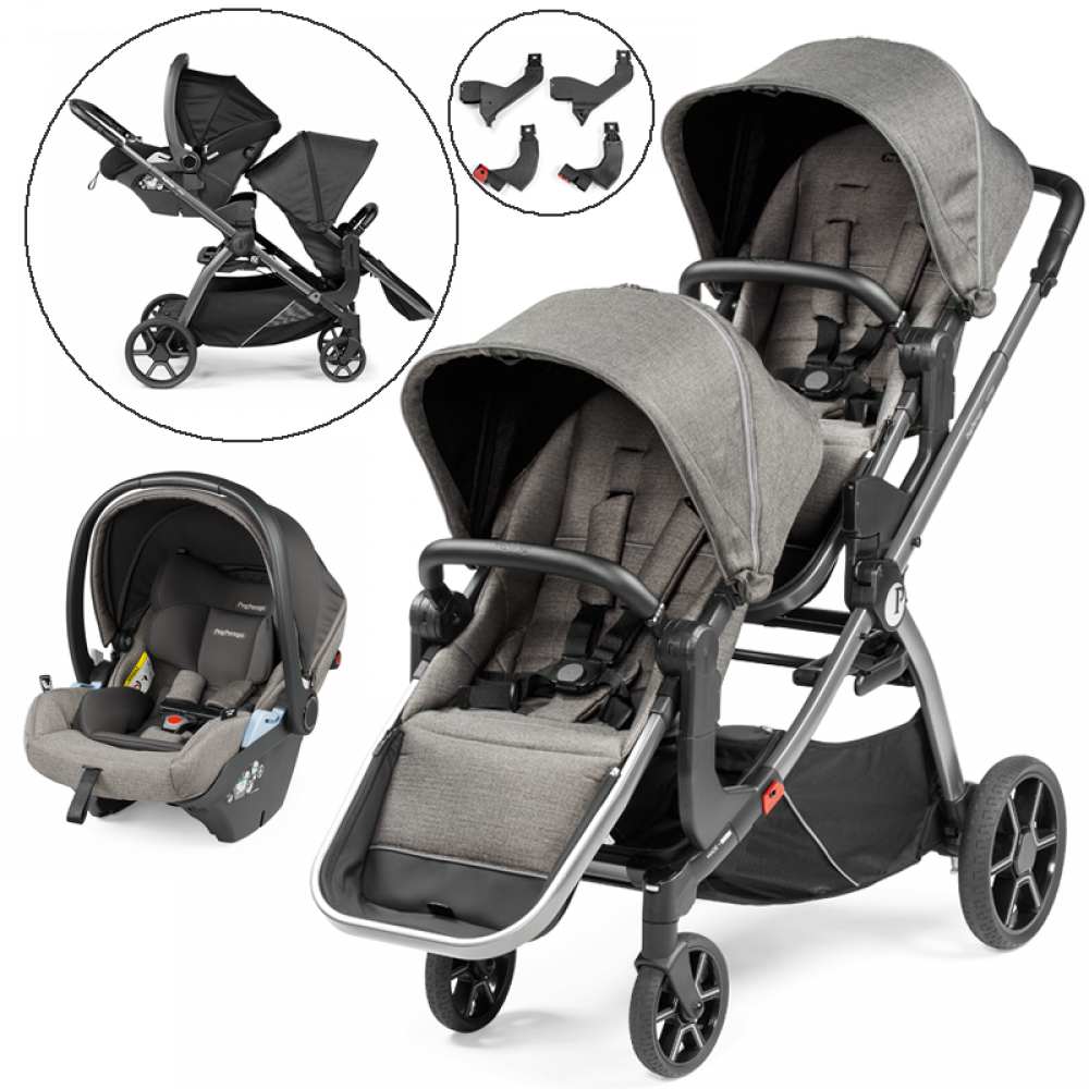 Peg Perego Ypsi Double Stroller Bundle & 1 Lounge Car Seat- City Grey – For Your Baby