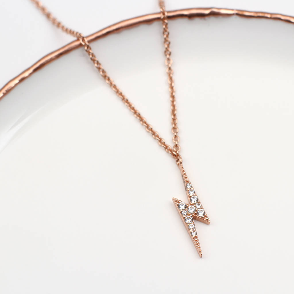 Personalised 18ct Gold Plated Or Silver Mini CZ Lightning Bolt Necklace – Hurley Burley