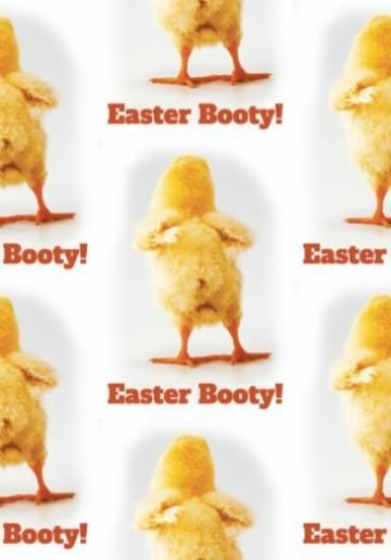Yellow newly hatched chicken shaking its booty now Ive seen everything! Cute personalised Easter gift wrap or what!