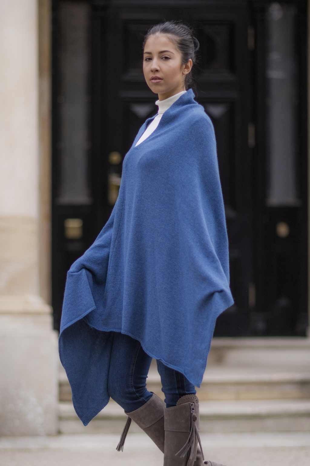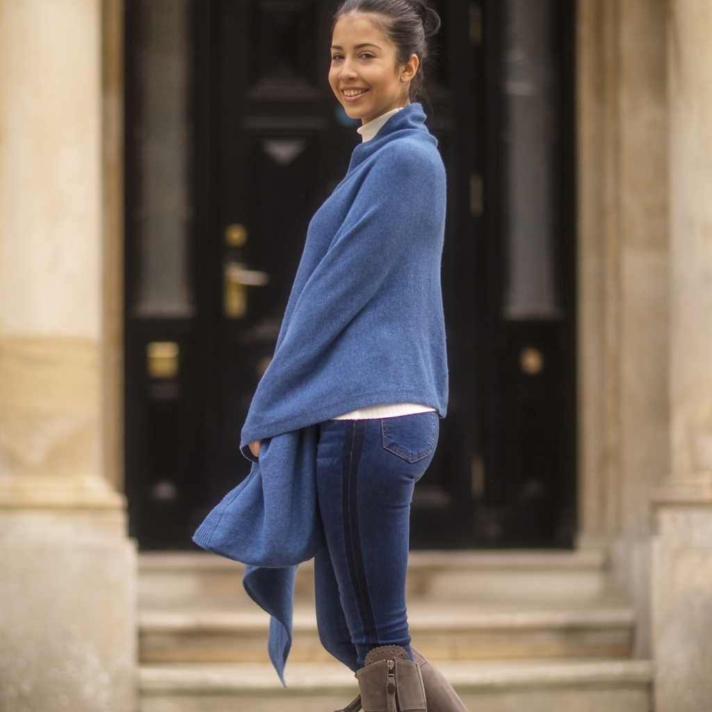 This fabulous poncho really could not be easier to wear: with no buttons or fasteners just sling it on and move it round to get the effect you want. A variation on our Classic Poncho, the Pimlico has a different weave and uses our ‘no wool’ mix. Featuring ribbed edging detail around the neck and hem, this poncho adds a touch of style to any outfit whilst also keeping you beautifully warm. 50% cashmere, 30% silk and 20% viscose and polyamide mix