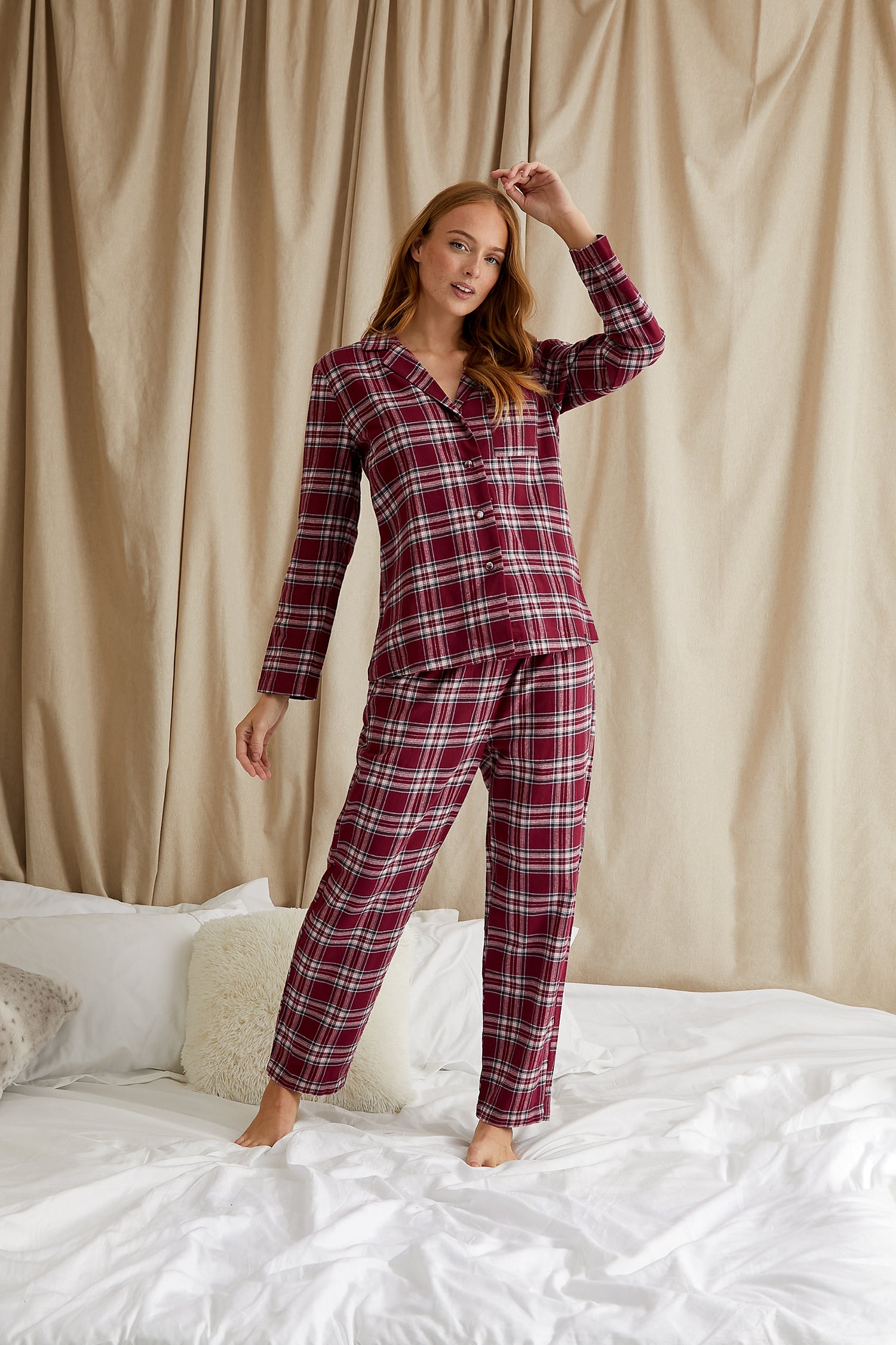 Plaid Pyjama Set in Bordeaux UK 16-18 / Bordeaux