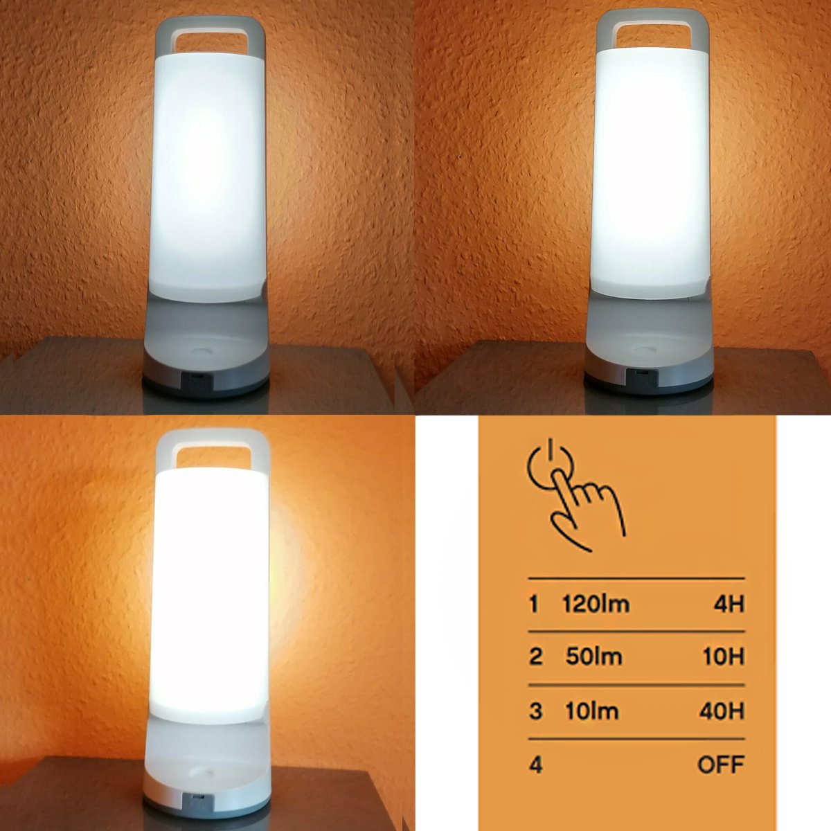 CONSTRUCTION: Modern and compact design which can be easily transported with its lightweight impact resistant materialLIGHT OUTPUT: 10-120 lumens, 1.2W, 4000k built in natural white LED with frosted diffuser delivers a smooth bright LED lightDimensions: Height: 28.1 cm Diameter: 10.2 cm TECHNICAL: IP44 Rated for outdoor use, solar powered – no need for batteries, 3.7 volt lithium-ion rechargeable battery, class 3 APPLICATIONS: Perfect portable solar light for indoors, outdoors, gardens, tables, work light, camping, fishing