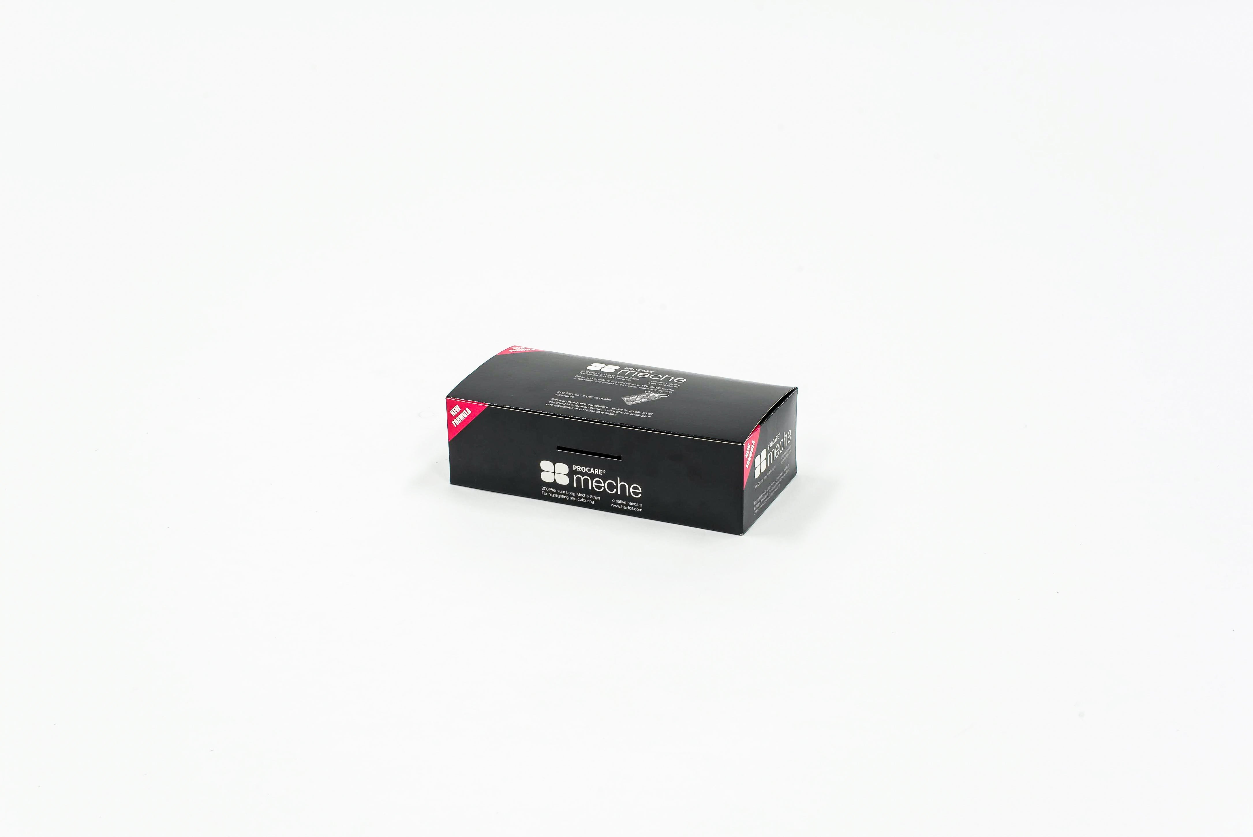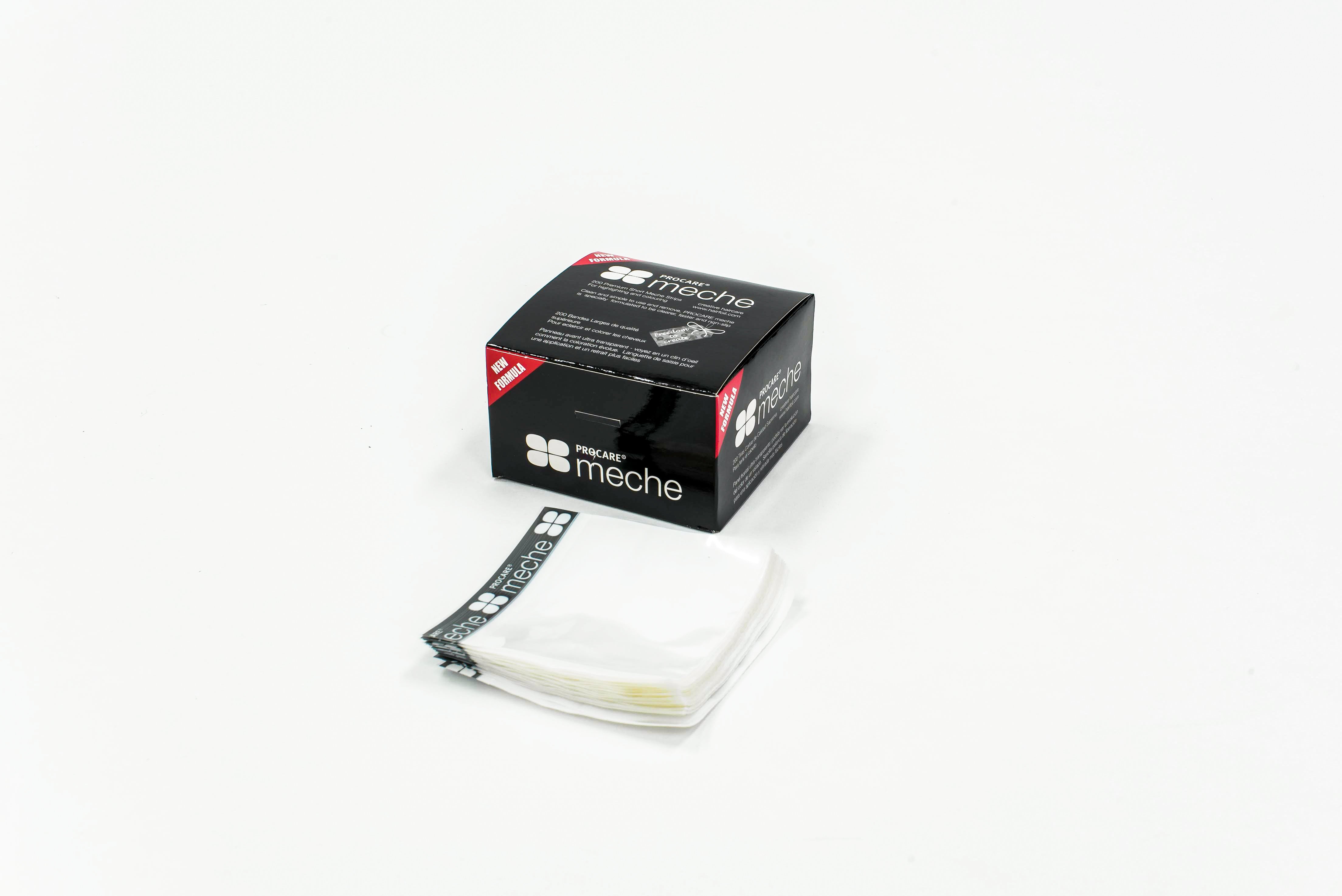 Suited to shorter/longer hair and known favourite with many top colourists. This meche is an excellent alternative to the traditional foil as the lear front panel allows you to keep an eye on your colour developing. The strong adhesive strip allows you to place colour very close to the root yet releases effortlessly when you are ready to wash your colour out. Supplied in packs of 200 ProCare Meche is particularly suitable for mobile or session work.