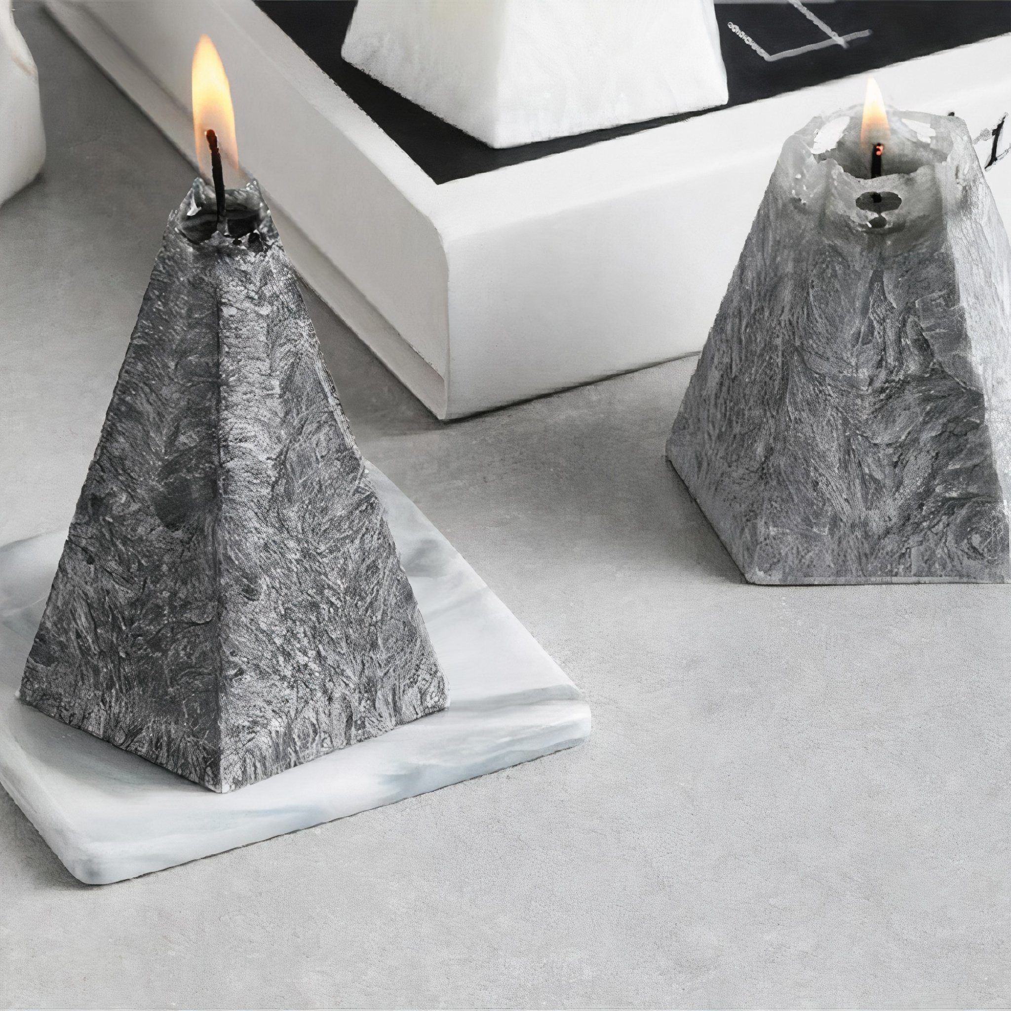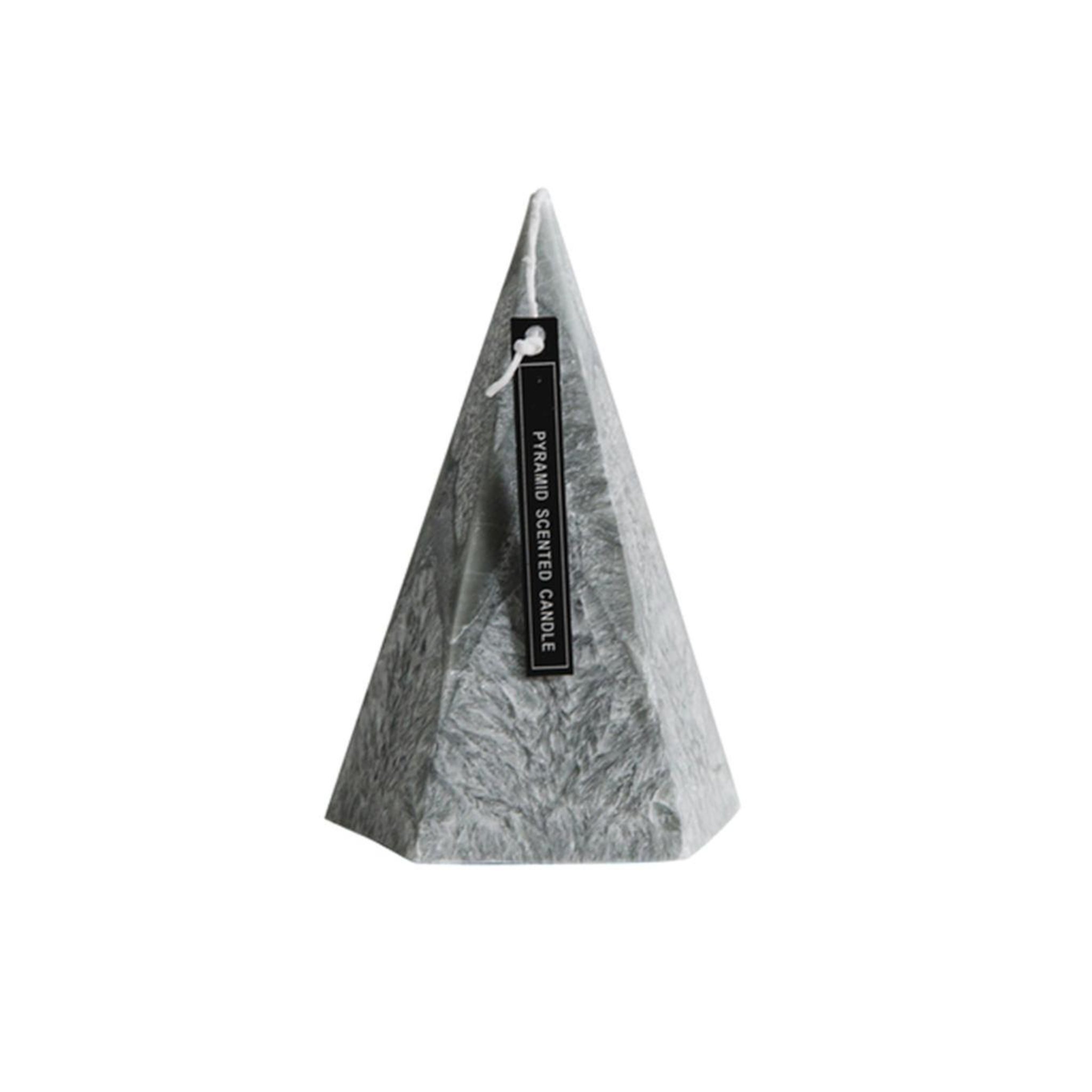 Specification: Pyramid Candles – Thyme & Sage Scent – Black / Grey / White – Wax – The Trouvailles