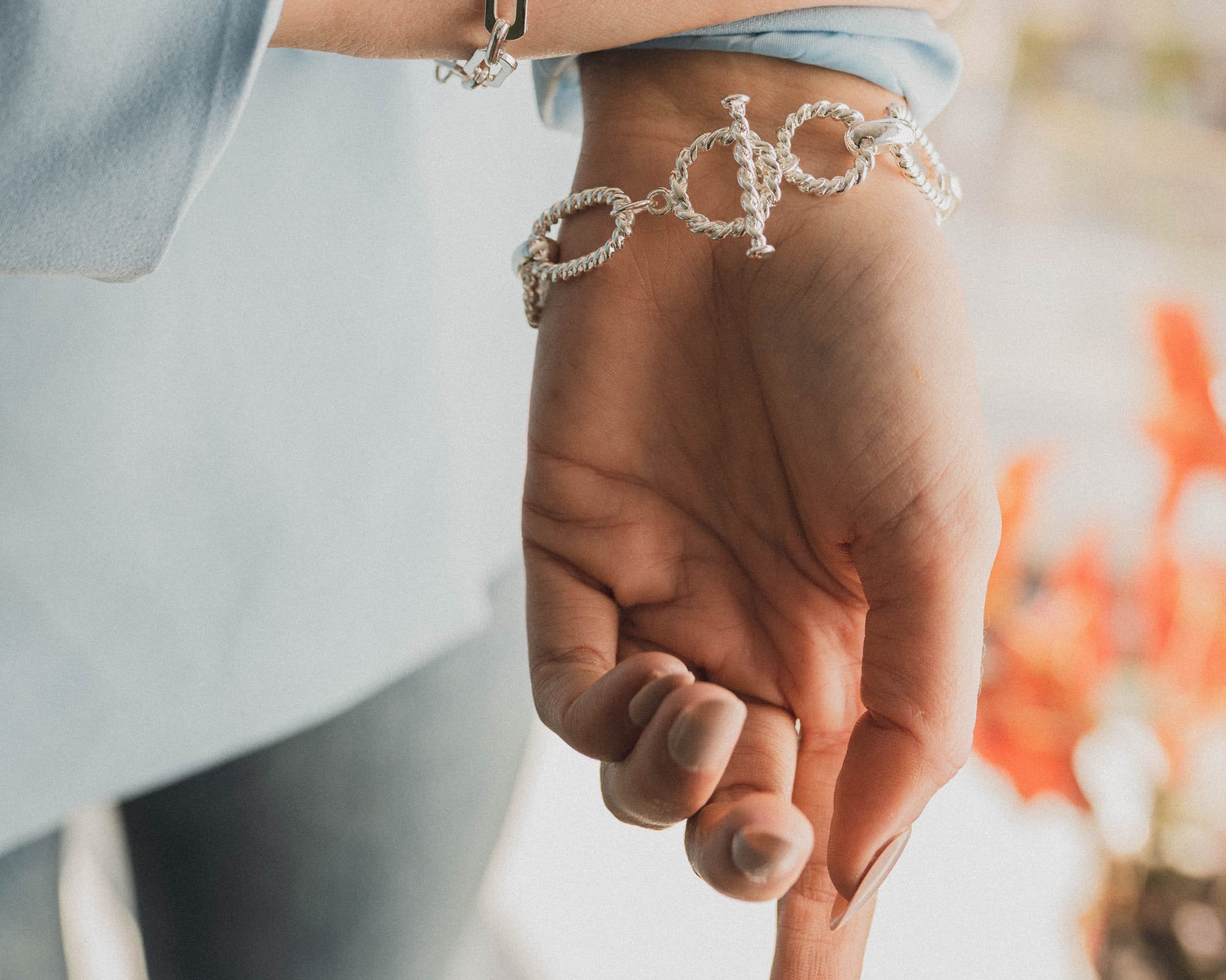 This bracelet is 22k Gold plated on brass. Plated jewellery has the same quality as fine jewellery, however, with time, the plated layer will wear off. For that reason, we apply a layer of clear resin to prolong its durability.At least 50% of the brass we use in the jewellery make is recycled.