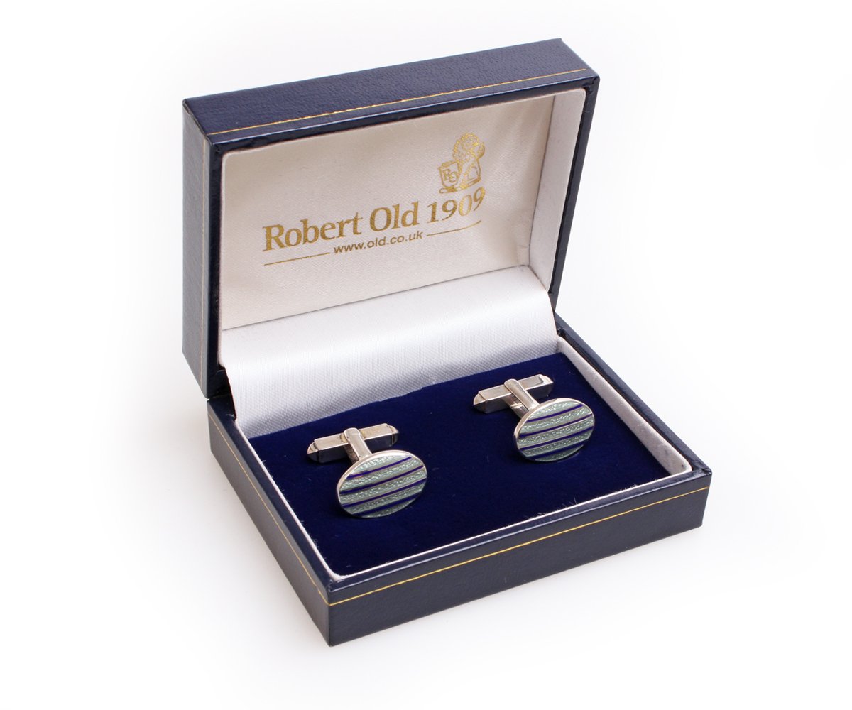 Specification: Robert Old Mens Turquoise Stripe Sterling Silver Cufflinks – Robert Old & Co