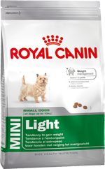 Royal Canin Mini Light is a Complete feed for dogs – For adult and mature small breed dogs (adult weight up to 10 kg) with a tendency to gain weight – Over 10 months old Weight management Helps reduce your dog s energy intake by 18%* while giving the same quantity of food. Helps achieve ideal weight by combining a high protein level (30%) with a low fat content (11%) and L-carnitine to aid the metabolism of fats while maintaining muscle mass. *compared to a maintenance feed. Appetite Satisfaction Enriched formula with fibres which contributes to reducing the feeling of hunger between meals while satisfying the dog s appetite. Dental Health Helps reduce tartar formation thanks to the chelation agents in calcium. Ingredients COMPOSITION: dehydrated poultry meat, maize, barley, rice, maize gluten, vegetable fibres, vegetable protein isolate*, hydrolysed animal proteins, animal fats, beet pulp, yeasts, fish oil, minerals, soya oil, psyllium husks and seeds, fructo-oligo-saccharides, borage oil, green tea and grape extracts (source of polyphenols).ADDITIVES (per kg): Nutritional additives: Vitamin A: 22400 IU, Vitamin D3: 1000 IU, E1 (Iron): 38 mg, E2 (Iodine): 3.8 mg, E4 (Copper): 7 mg, E5 (Manganese): 49 mg, E6 (Zinc): 148 mg, E8 (Selenium): 0.05 mg – Technological additives: Pentasodium triphosphate: 3.5 g – Preservatives – Antioxidants. Analytical Constituents: Protein: 30% – Fat content: 11% – Crude ash: 5% – Crude fibres: 6.5% – L-carnitine: 150 mg/kg.*L.I.P.: protein selected for its very high assimilation.