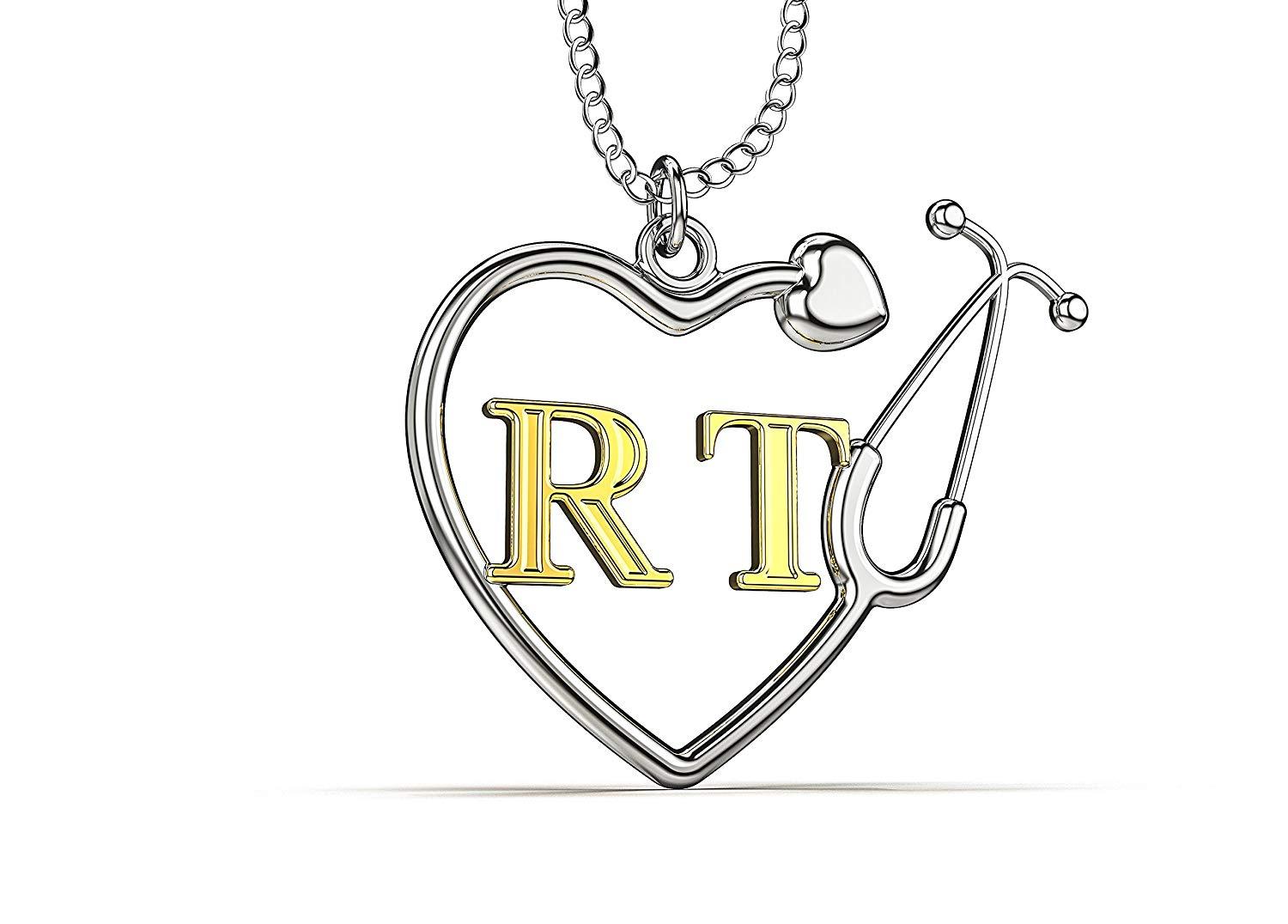 RT “Respiratory Therapist” Heart Shaped Stethoscope Necklace 18″ – Silver – Alloy – Caring Hands Gifts