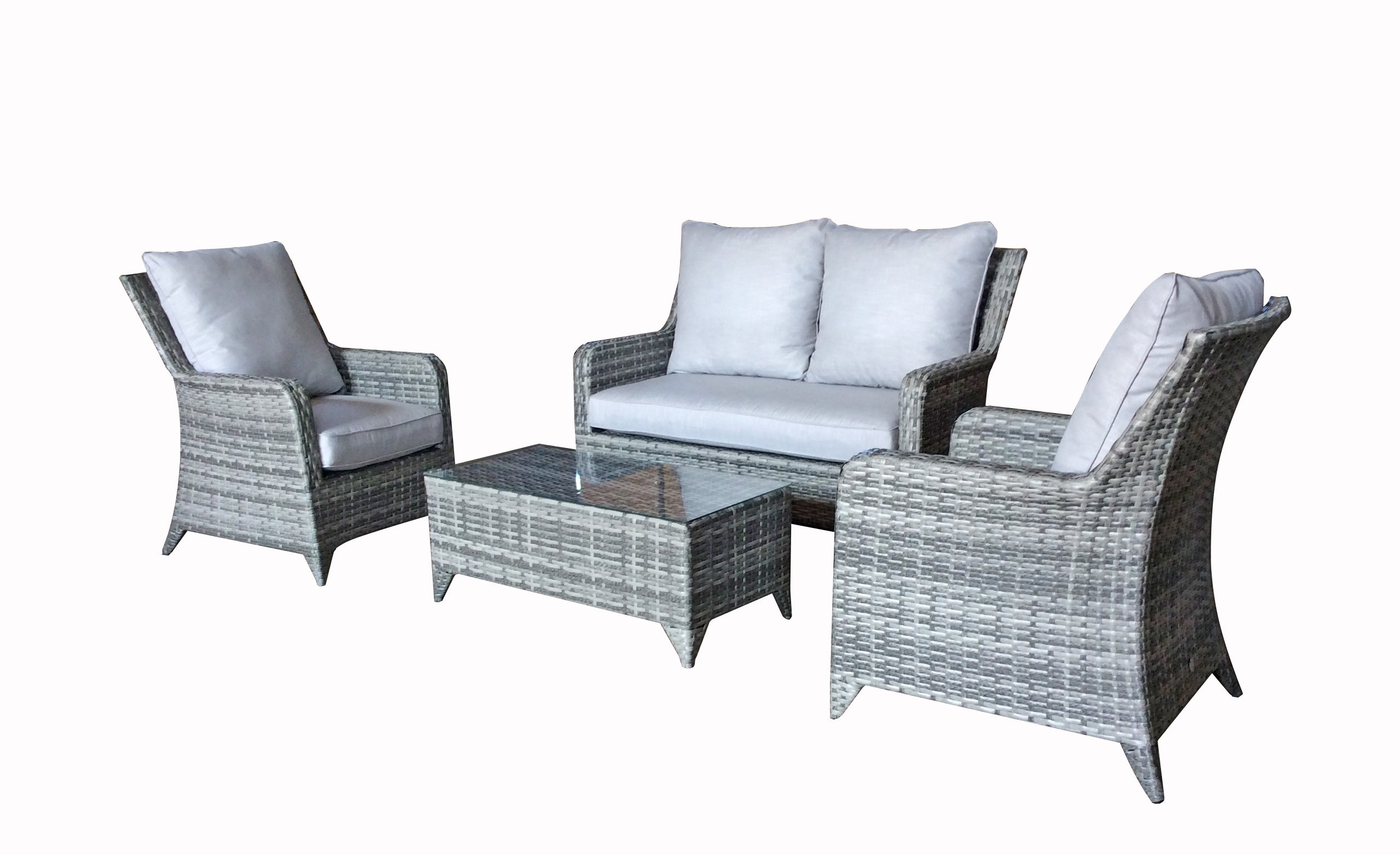 The Sahara Sofa SetAluminium framedUV treated wickerShower proof cushions with removeable coversComfortable extra high backs3 seat sofa W 2010mm x D 880mm x H 1020mmChair W 700mm x D 880mm x H 1020mmTable W 1000mm x D 500 mm x H 410mm