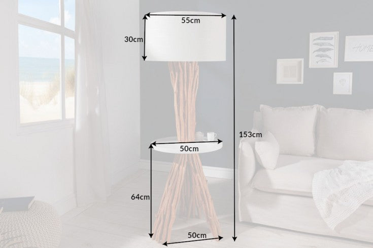 Servant floor lamp is a truly unique design element. Dominated by its large shade made of high-quality linen canvas, it provides a pleasant lighting in each room without glare. Natural atmosphere. In the middle, it is surrounded by a white ring usable as a storage space for drinks and other small items. Light bulbs not included
