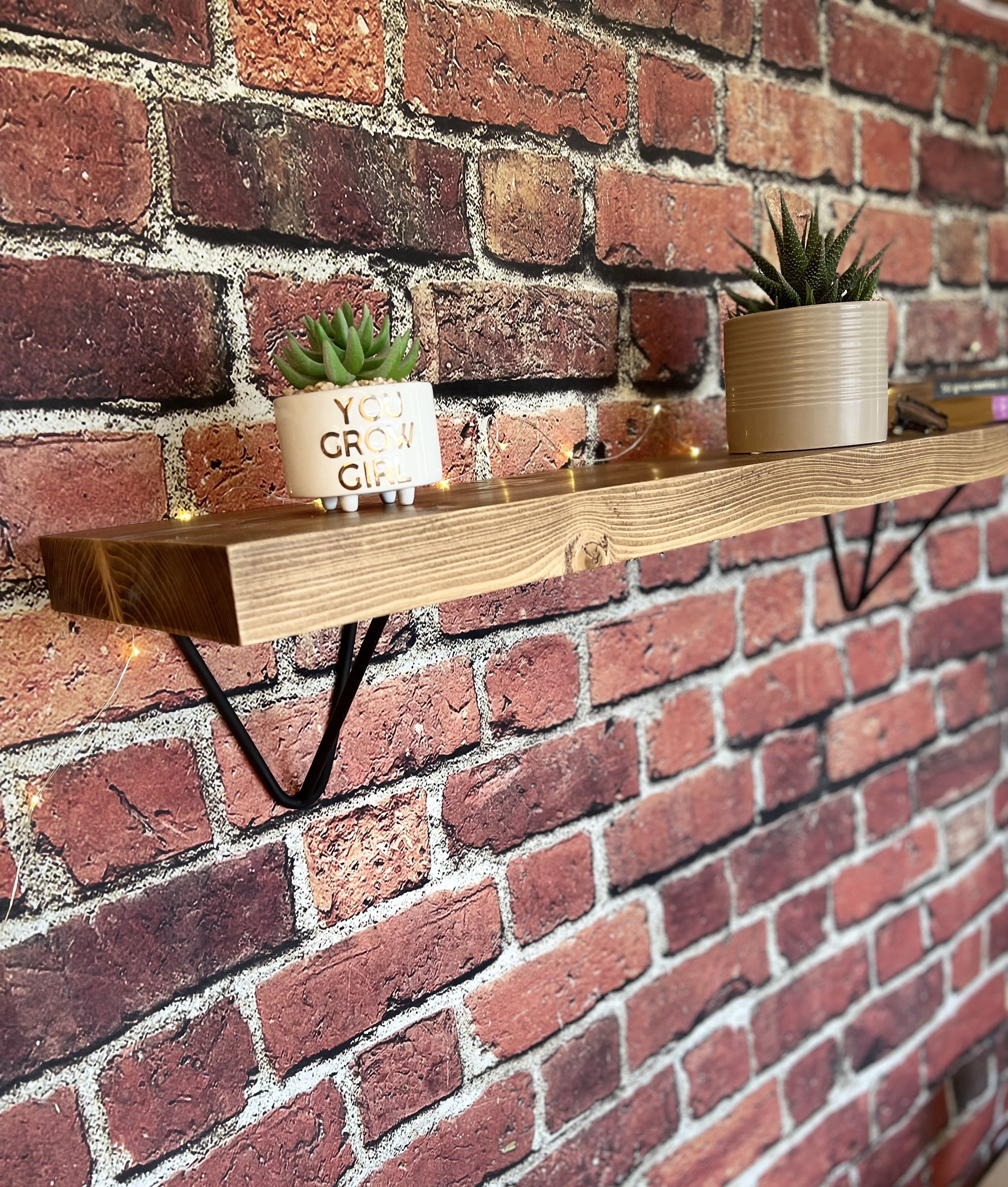 Introducing our new shelving supported by gorgeous black prism brackets. Perfect in any room around the house including acting as a unique bedside table!