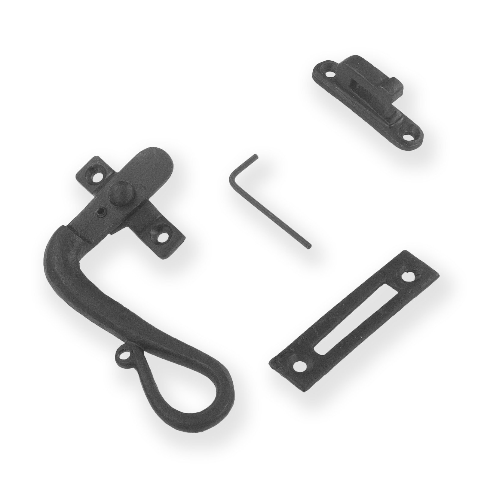 A classic design.Solid cast iron with a traditional black beeswax finishPlease note: beeswax is a natural product and can be sticky. Please buff with a soft cloth or see How to Care For Hand Forged IronmongeryWindow stays available in 3 sizes supplied with x2 lugsCasement Fasteners avaialable as left or right hand opening supplied with both a receiver bridge and mortice plate for flush and recessed casement windowsSee Dimensions for exact measurementsAlso available in PewteråÊClick to download dimensions in PDF format. åÊClick to download drawing file in DWG format.