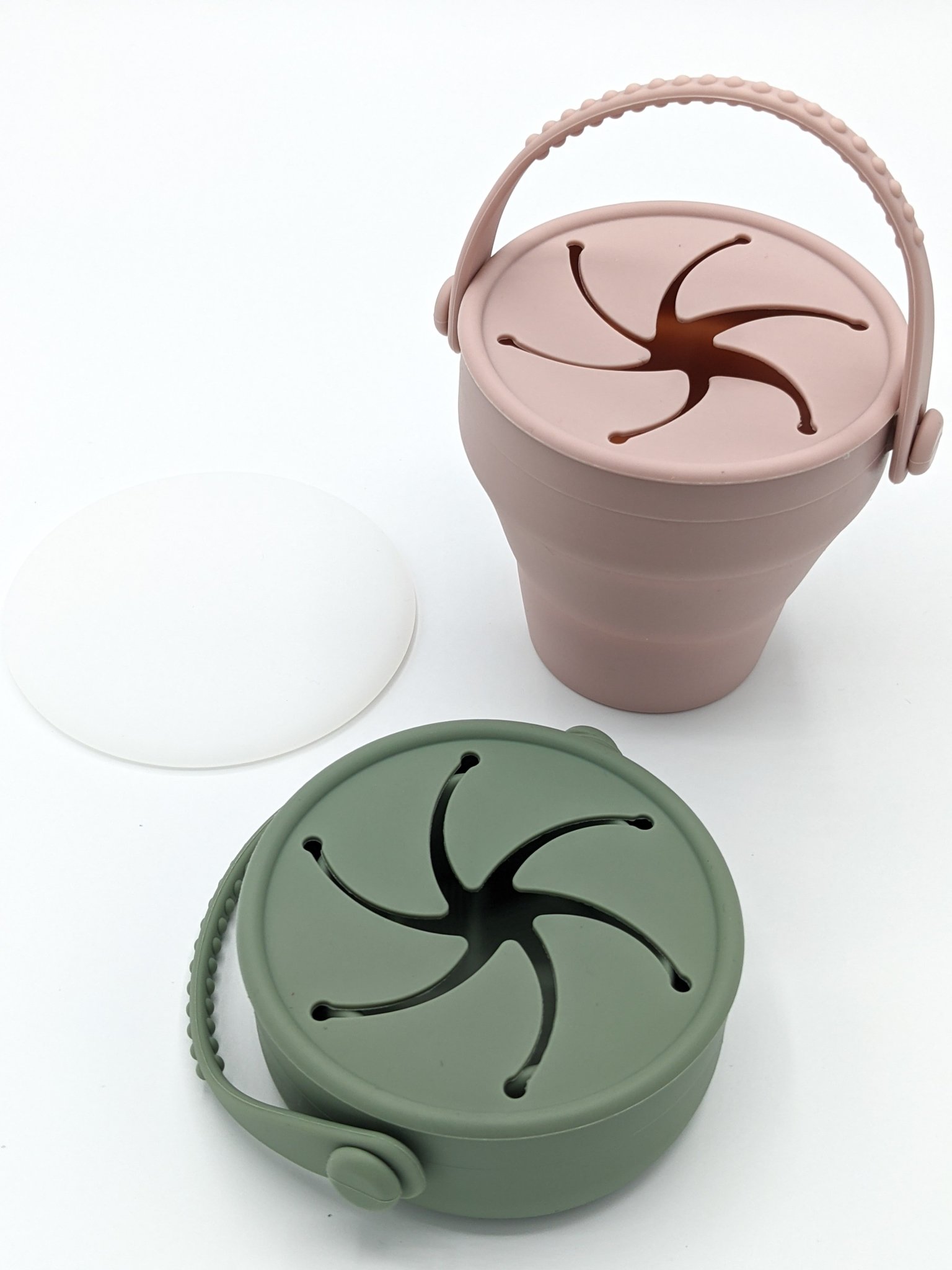 Our handy snack cups make snacking easy and out very convenient for trips out and about. The clever silicone flaps minimise mess and will help toddlers and babies feel more independent. Older kids can even enjoy the too! 100% food grade silicone, collapsible and unbreakable.