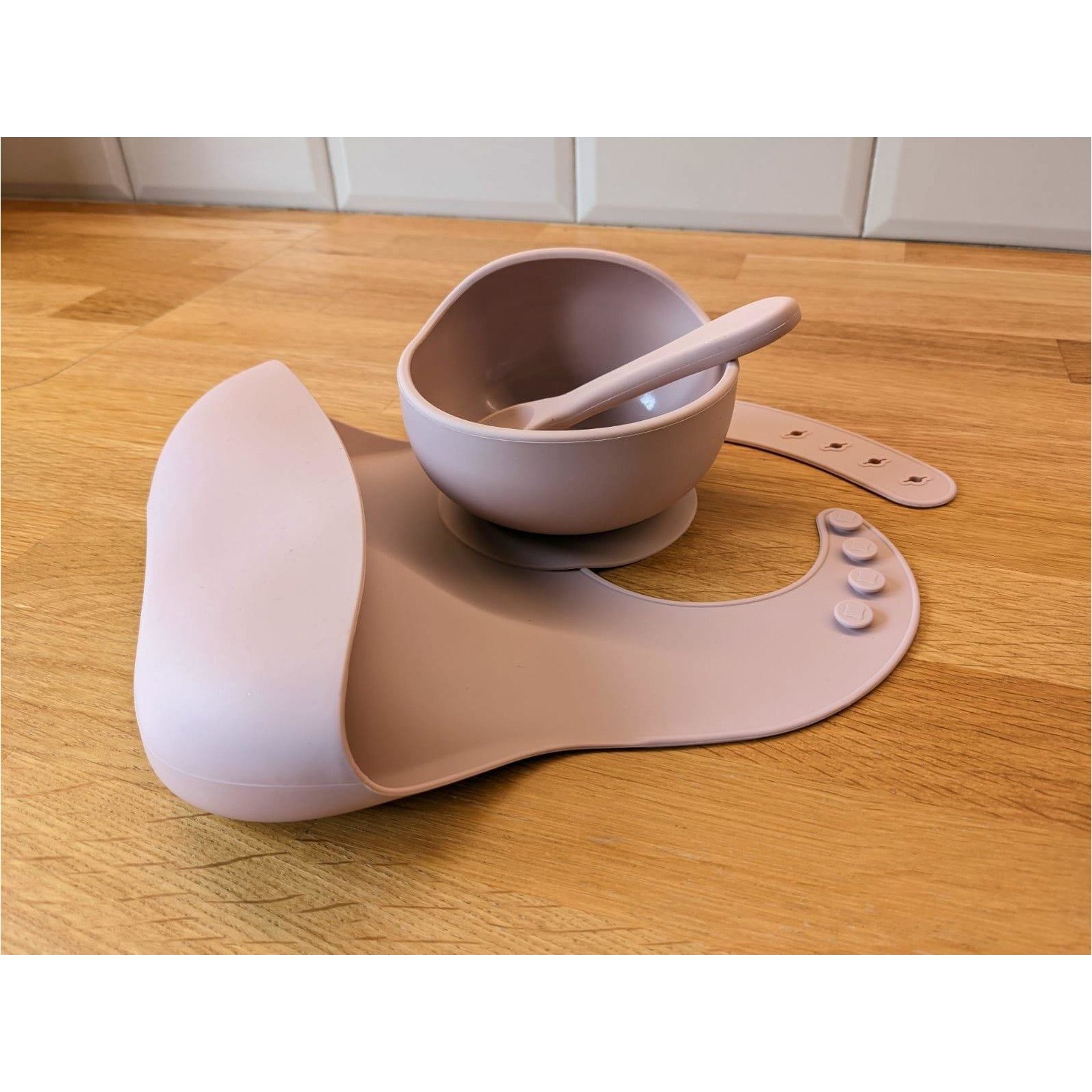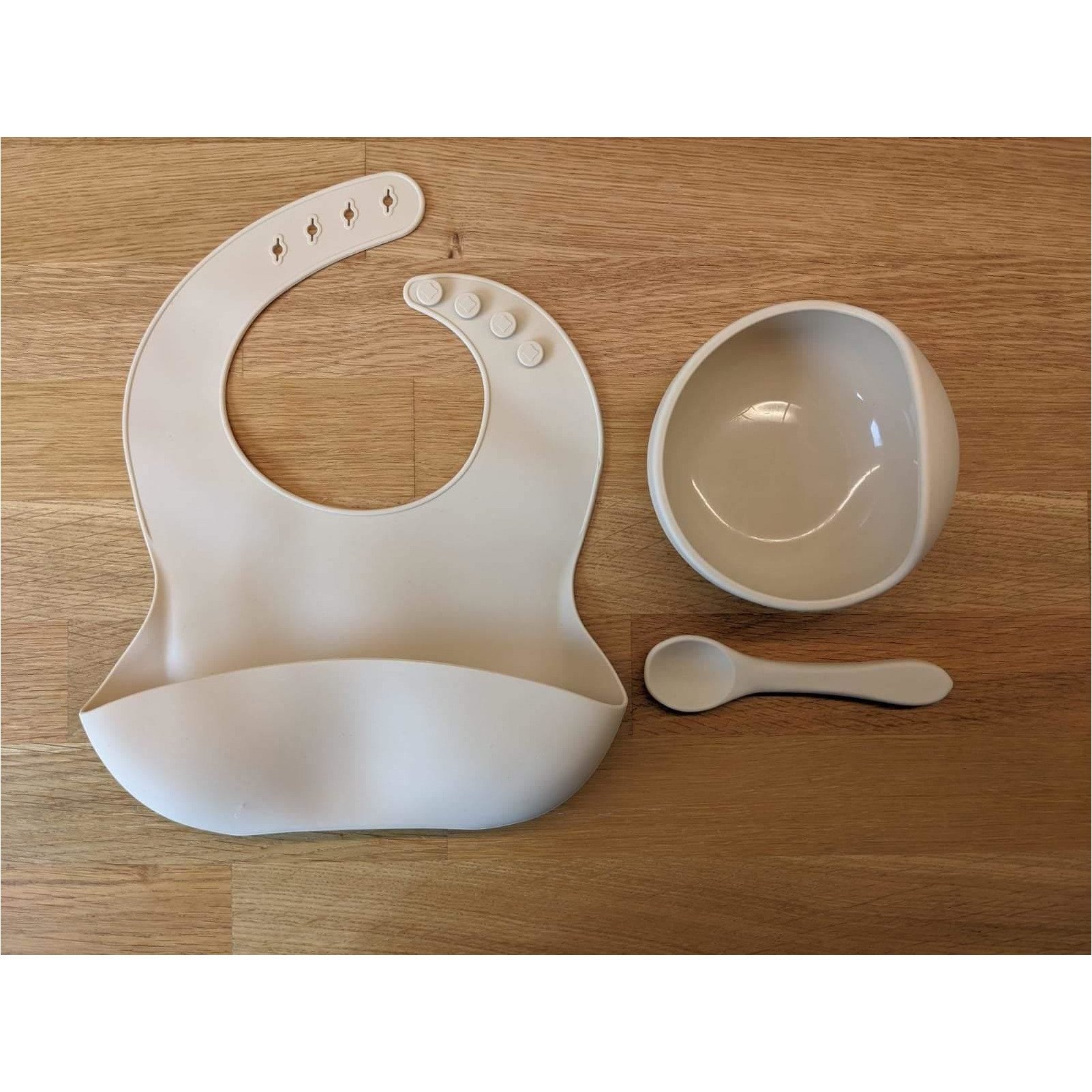 Silicone Suction Bowl, Bib Spoon Set Cream – Children’s Silicone Tableware – Tiny Roo