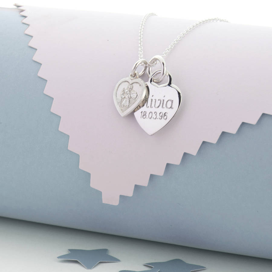 Silver St Christopher Double Heart Charm Necklace – Hurley Burley