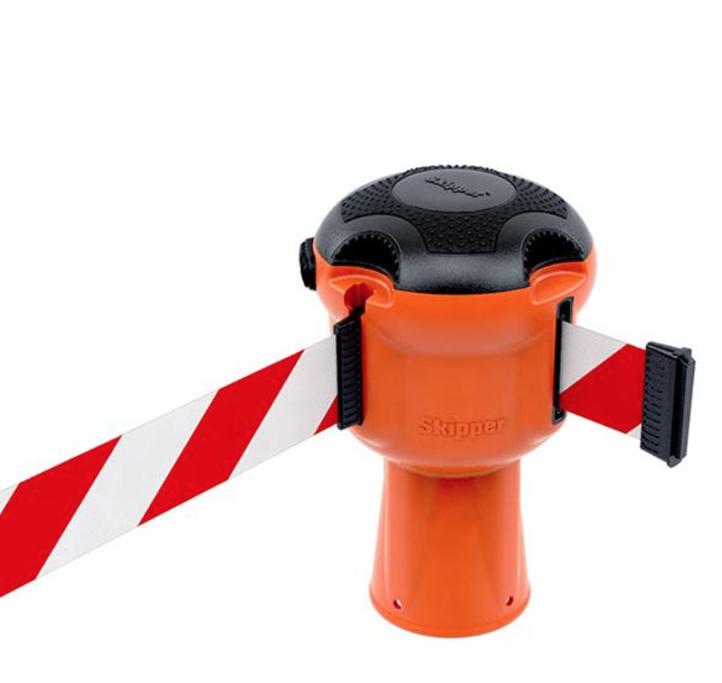 Product details The unique way to cordon off any area, creating safer environments with high visibility tough Nylon retractable 9m tape. The high specification materials, including fabric tape and soft-touch areas for improved grip, make the Skipper unit highly robust and dependable. The versatile and adaptable unit is used across a wide range of industries, from construction to airports and shipping, to events, retail, facilities management and so many more. Built to last, this will fit on to standard 750mm or 1 metre road cones or alternatively can be fitted with the Skipper post and base system. Skipper simply clicks on top of most traffic cones, saving time, storage space and money. It pays for itself in months over throwaway barrier tape. Key Features: Retractable tape holder housing a fully adjustable 9m High Visibility Barrier Tape The tape clip at the end of the tape can clip back on to itself, allowing you to secure it around posts / beams Self-tensioning ratchet keeps tape tension, built to last Specifications Dimensions Cone Hole – 90mm Height – 240mm Width – 145mm Tape Width – 48mm Weight 800g per piece Colour Orange Have Questions About The Skipper Barrier If you have any questions about this superb Skipper System then please contact our sales team on 0161 706 0479 . Our sales team will be happy to answer any questions that you may have. Or send us an email here. Delivery We are proud to offer next working day delivery on all in-stock items when ordering before 10am. If you require pre-9:00, pre-10:00 or other requirements for delivery please phone us for a price on 0161 706 0479. Or visit our Delivery Information page for further information. We work with several courier services to provide our customers with the best prices and value when ordering with us. Skipper™ Barrier – 9 Metre Tape – Orange White / Red Chevron Street Solutions UK