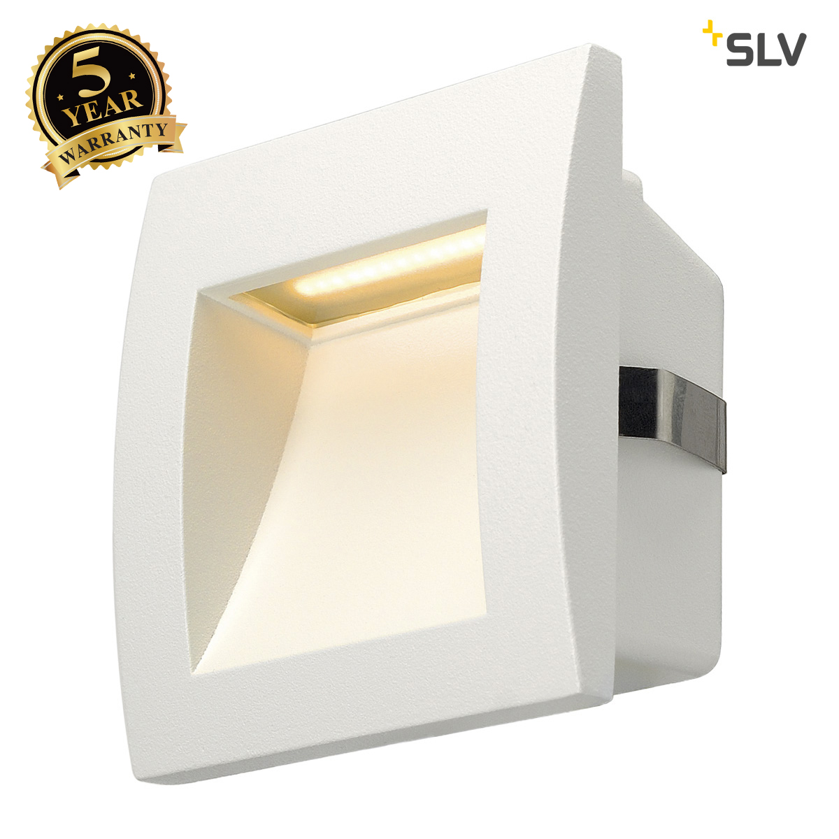 5 year warranty Manufacturer: SLV Lighting Colour: White Voltage: 240 Volt Height: 9 cm Wattage: 1.7 Watt SLV DOWNUNDER OUT LED S recessed wall light, white, SMD LED 3000K, IP55 233601