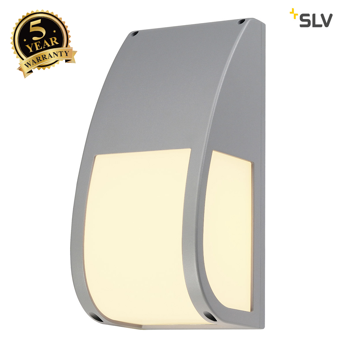 5 year warranty Can be ceiling or wall mounted Satin polycarbonate shade for diffused light Safety class 1 Requires E27 lamp (see related products) Manufacturer: SLV Lighting Colour: Silver Grey Voltage: 240 Volt Height: 29.5 cm Wattage: 25 Watt SLV KERAS ELT wall light, silver-grey, E27 Energy Saver, max. 25W, IP54 227174