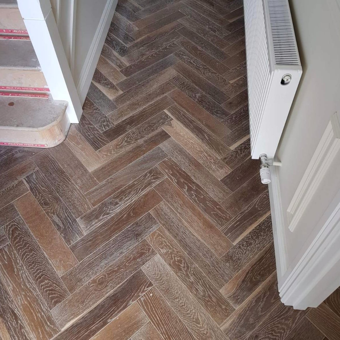 Specification: Smoked & Limed Herringbone 90 – 14mm – Water & Scratch Resistant – Wood Floor Store