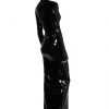 THE SOLARIA MIDI DRESS IN BLACK SEQUIN FEATURES A KEYHOLE CUTOUT NECKLINE WITH A DRAWSTRING CLOSURE. CUT IN A SLIM FIT WITH A SLIGHT STRETCH, IT IS DESIGNED TO BE PULLED ON OVER THE HEAD.Â