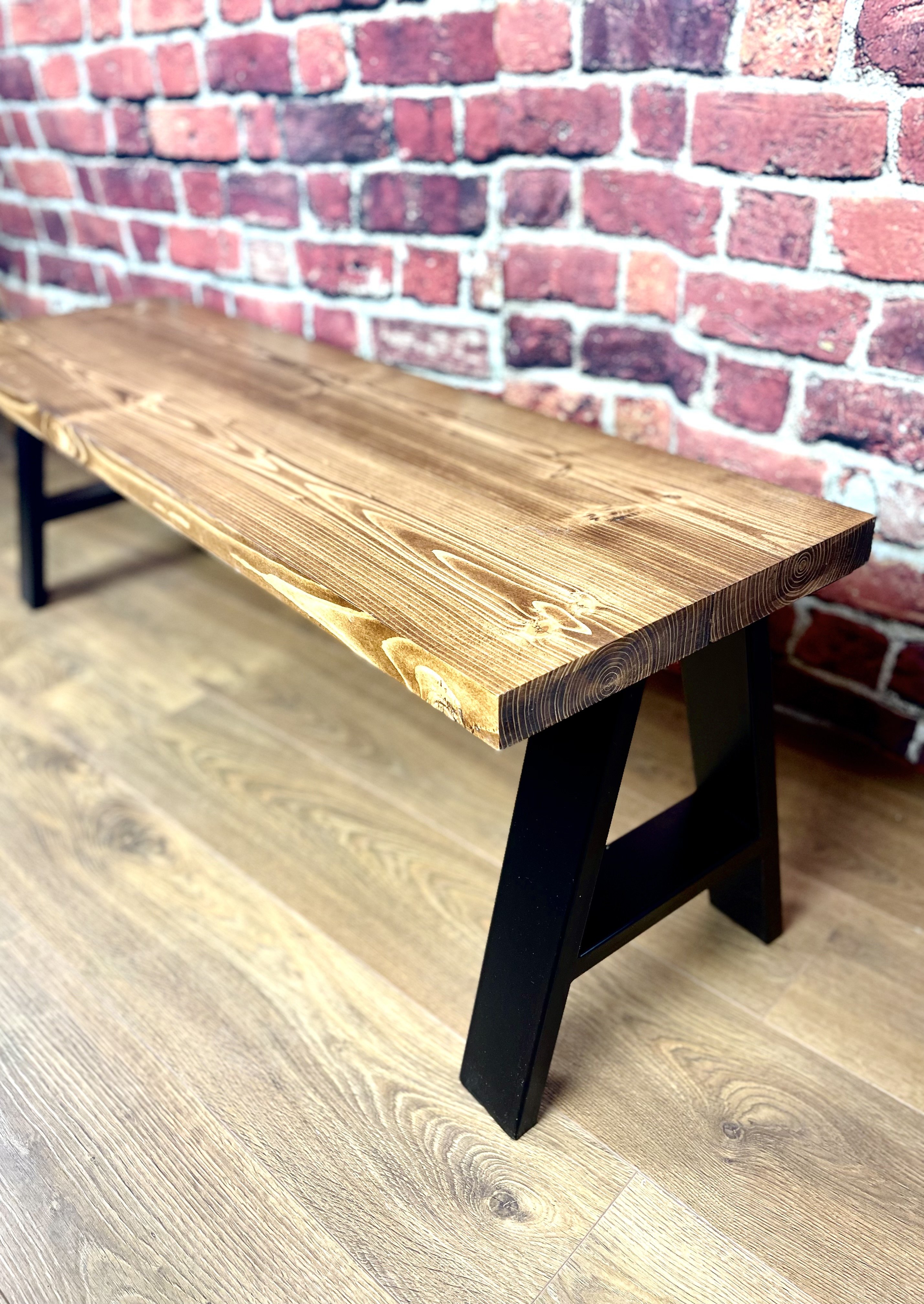 Specification: Solid Dining Table Bench with Steel A-Frame Legs – 190cm – Dark Oak