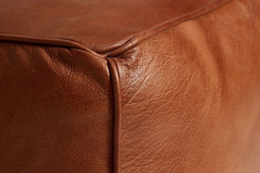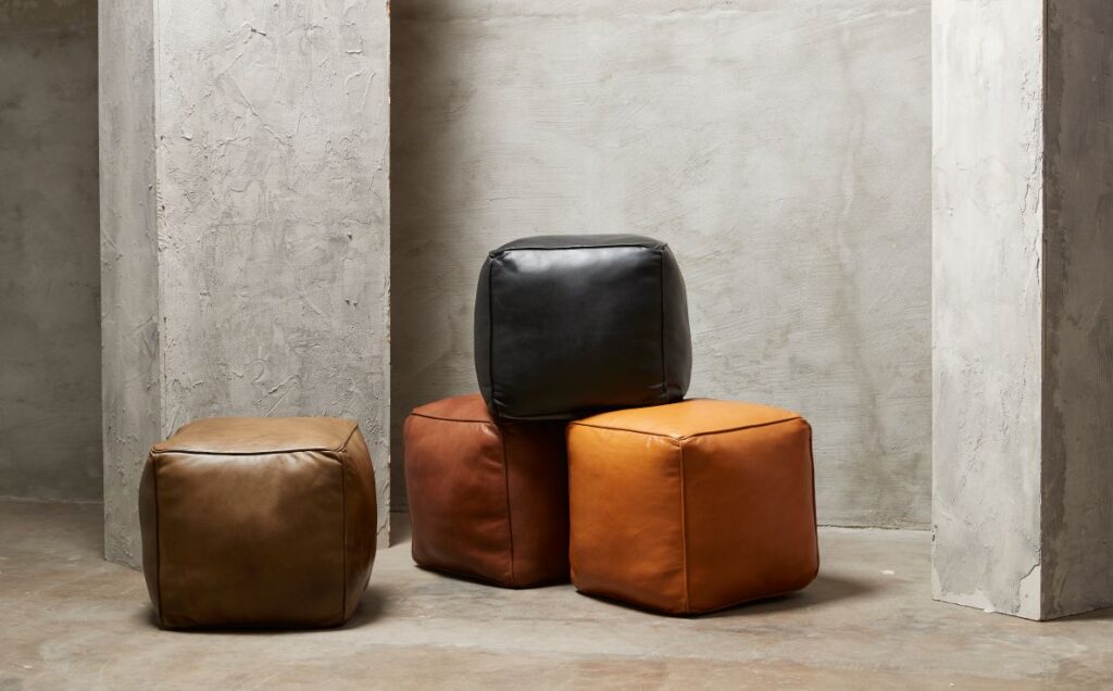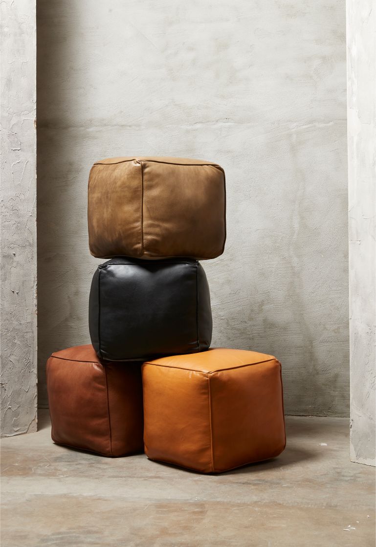 Elegant and stylish pouffe in black buffalo leather pouffe. Perfect height to be used as a stool or just as an extra seat in the hallway or in a lounge area. The leather is 100% natural and can have small scratches and irregularities from nature. St. Thomas will mature and get patina over time when used. Each pouffe is unique and may differ slightly from the picture. – St. Thomas Rose Brown – Buffalo leather Pouffe | Acumen Collection