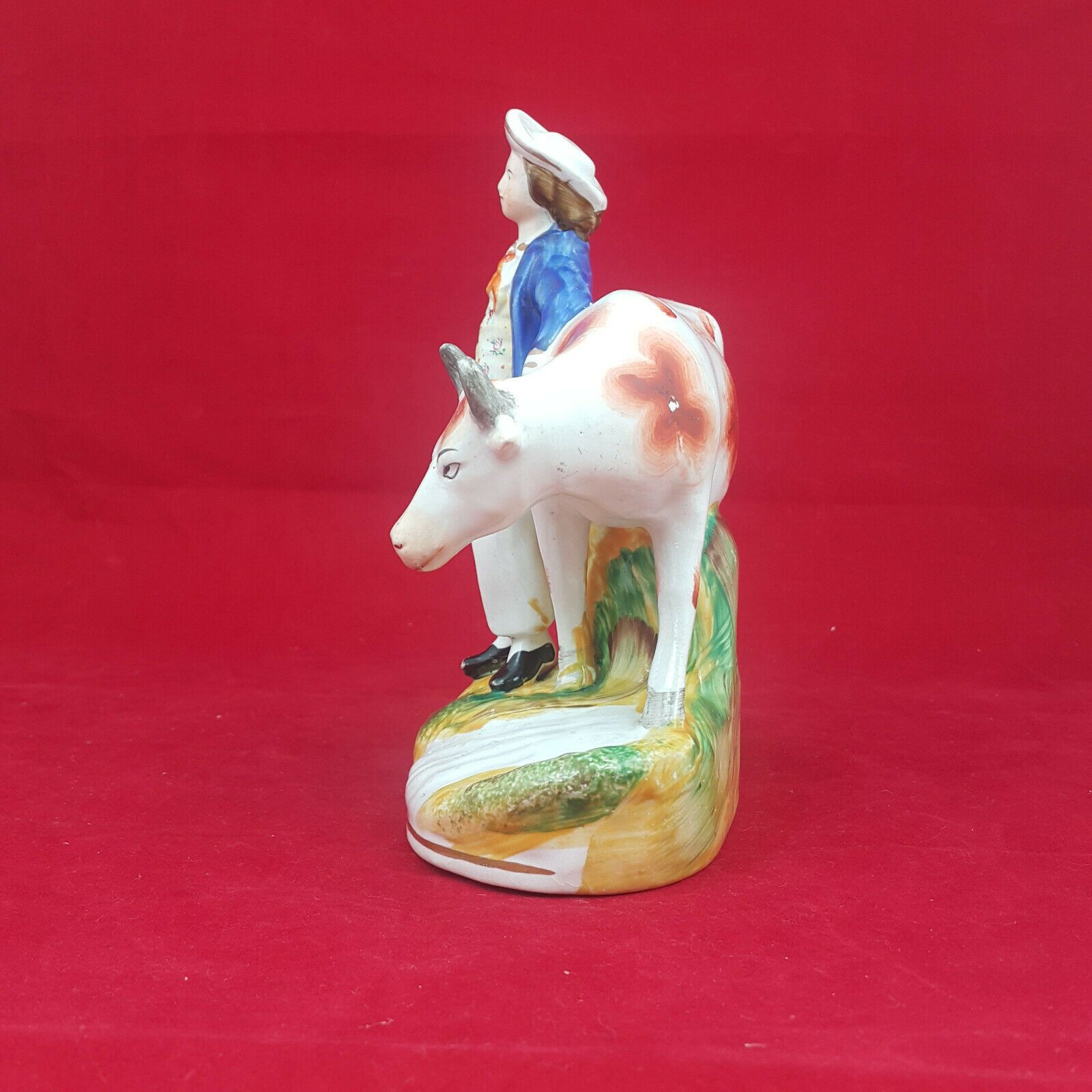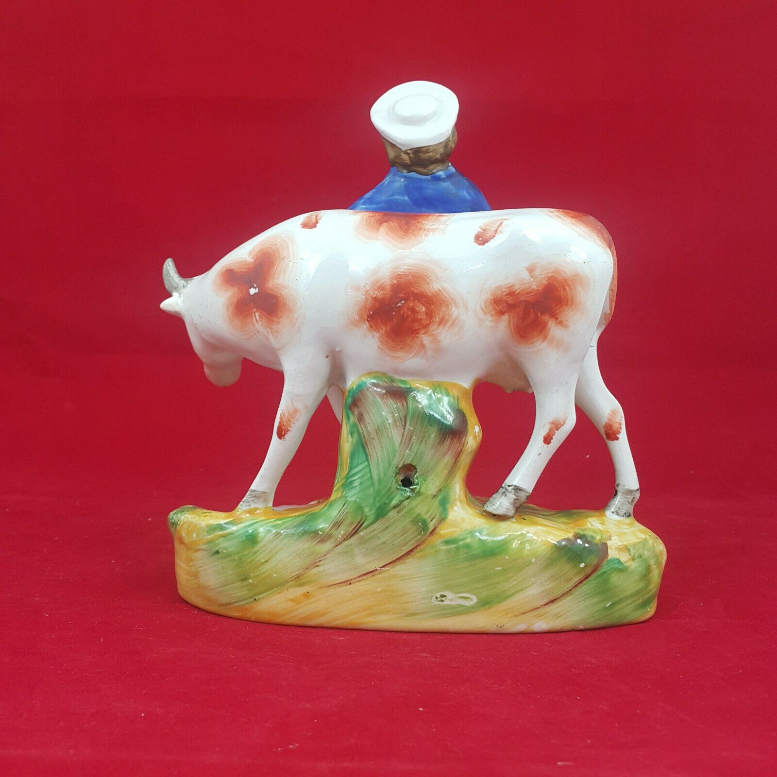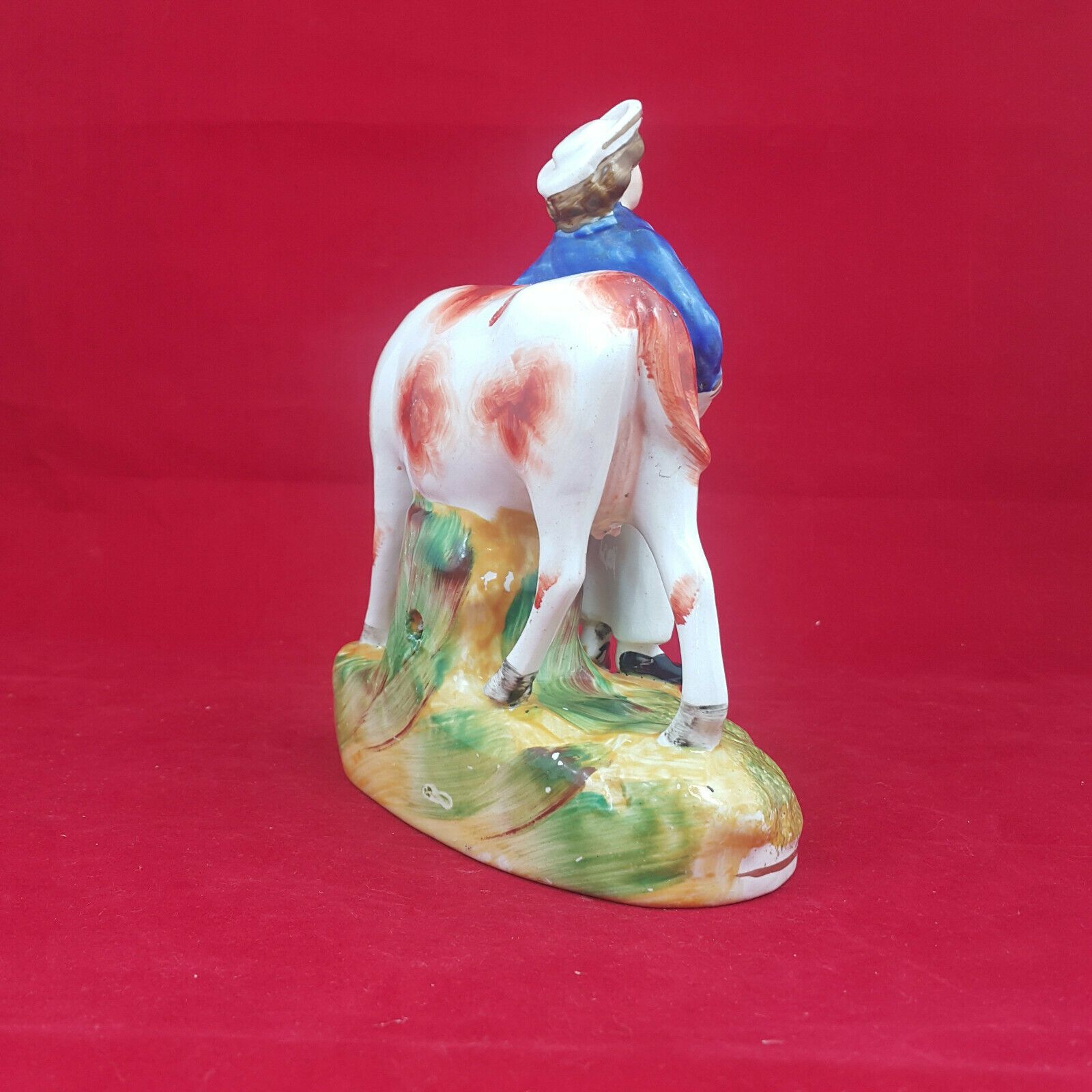 Specification: Staffordshire Victorian Pottery Milkmaid with Cow – Blue top – Amazing Antiques Etc. – Amazing Antiques