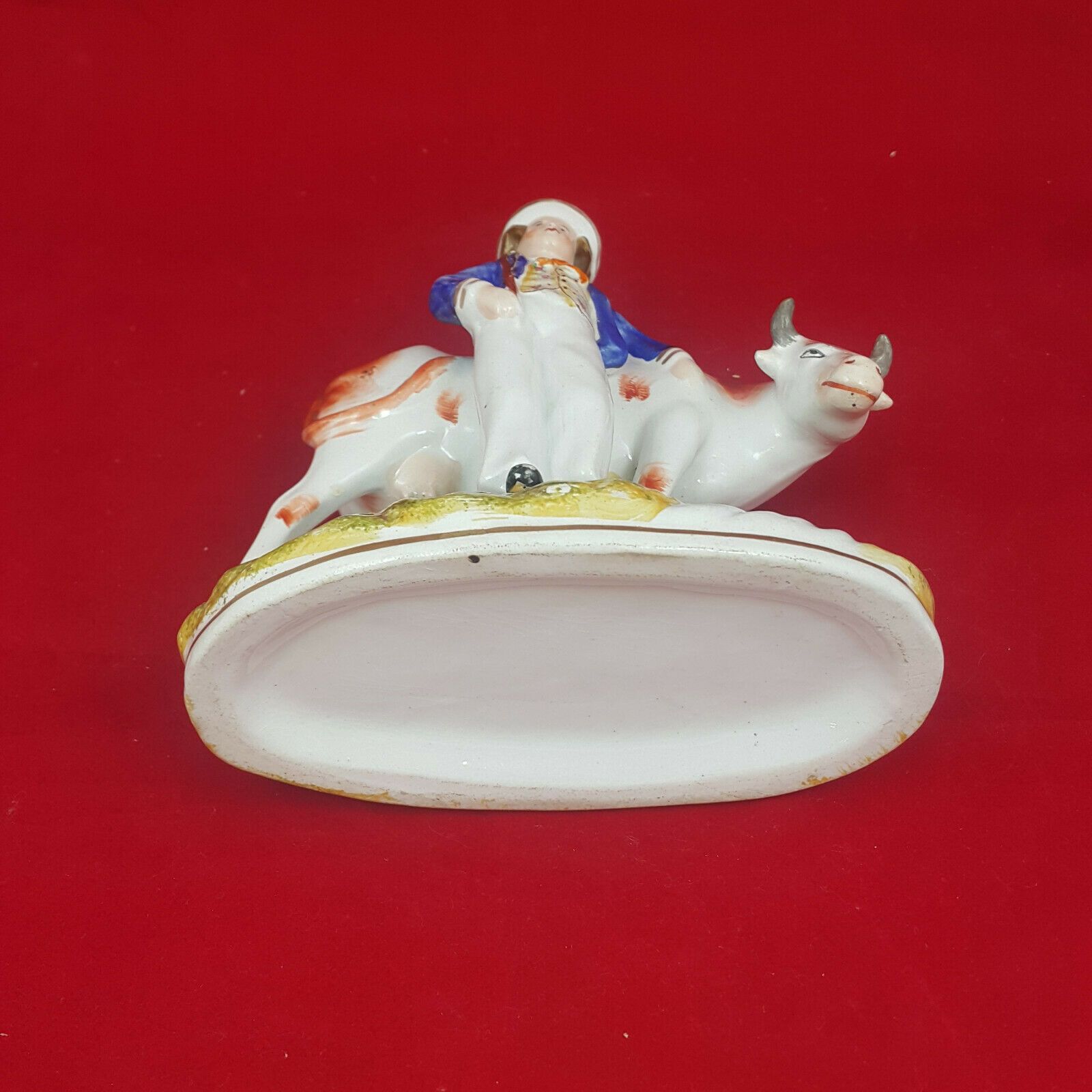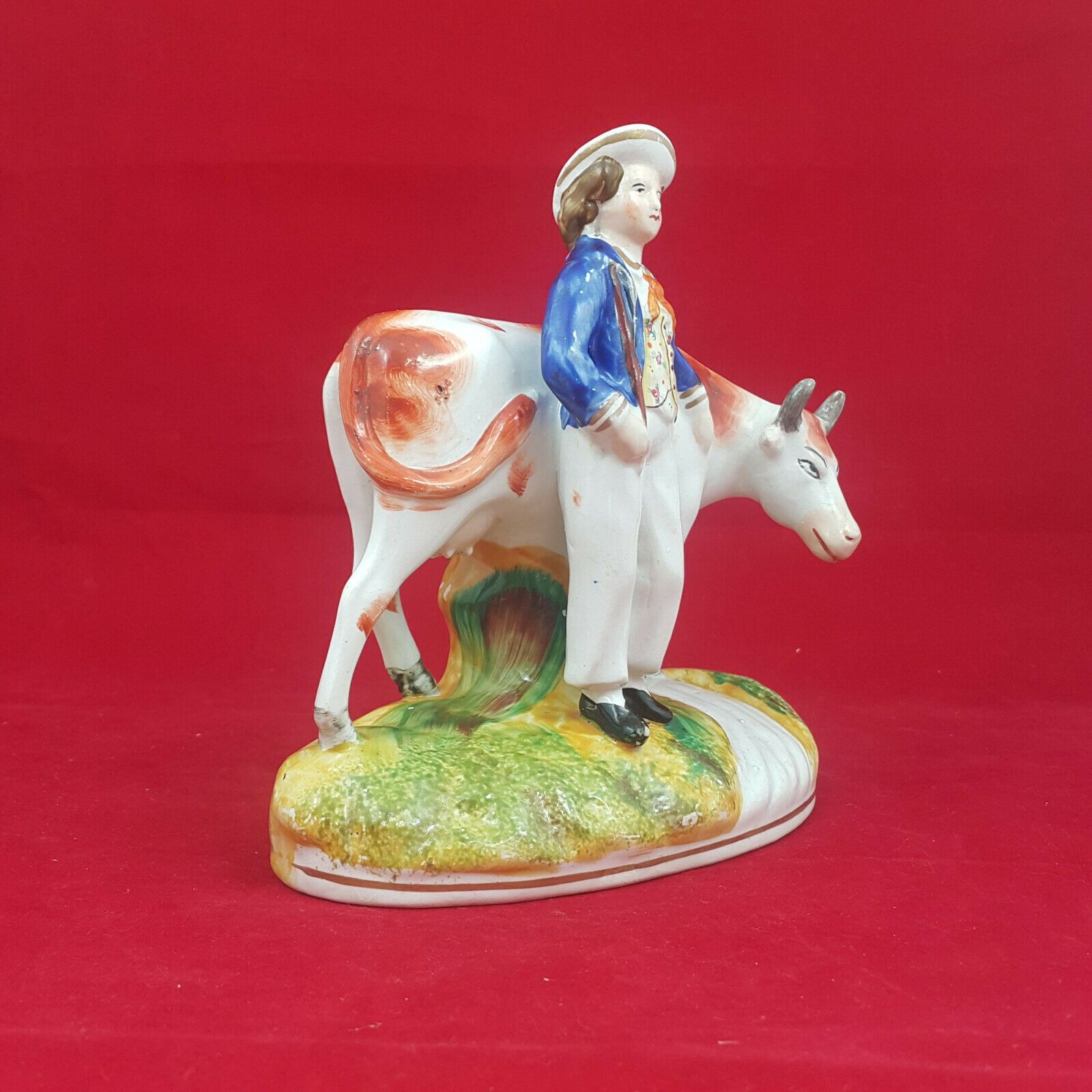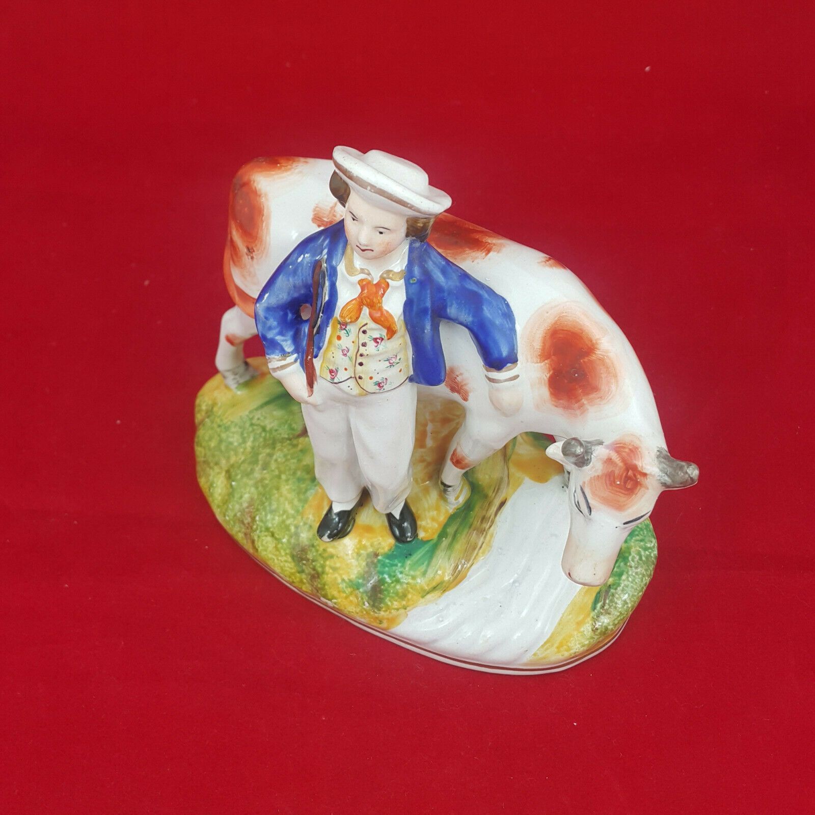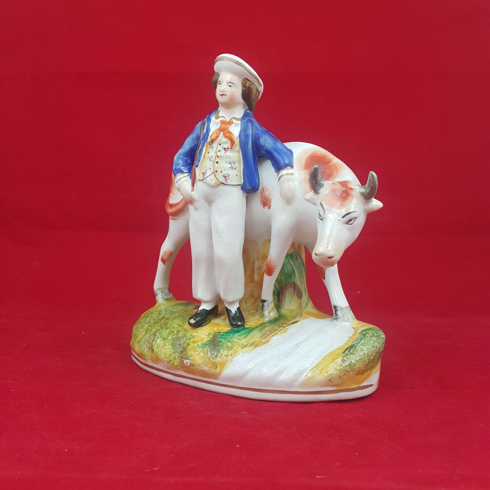 Specification: Staffordshire Victorian Pottery Milkmaid with Cow – Blue top – Amazing Antiques Etc. – Amazing Antiques