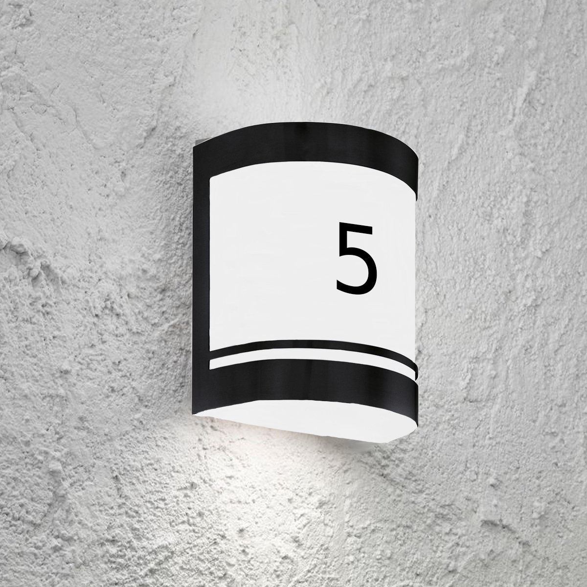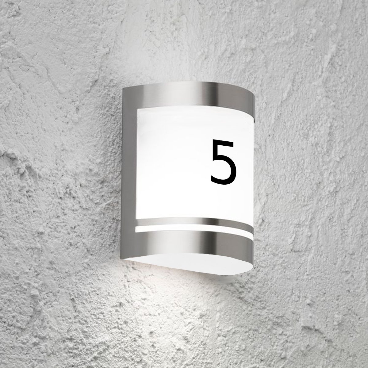 CONSTRUCTION: Elegant and modern design, with a steel body and opal polycarbonate diffuser – with numbers included so can be turned into a lighted door numberLIGHT OUTPUT: 1 x E27 bulb (not included), 11W maxDIMENSIONS: Height: 20.8 cm Width: 16 cm Depth: 9.2 cm TECHNICAL: IP54 Rated for outdoor use, 220-240V mains power, ambient temperature -20 to +30, class 1 APPLICATIONS: Perfect wall light for gardens, patios, porch, driveways, garages, sheds, conservatories