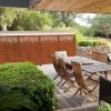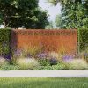 The weathering Corten steel finish to this fence panel creates a raw, textured and natural look.