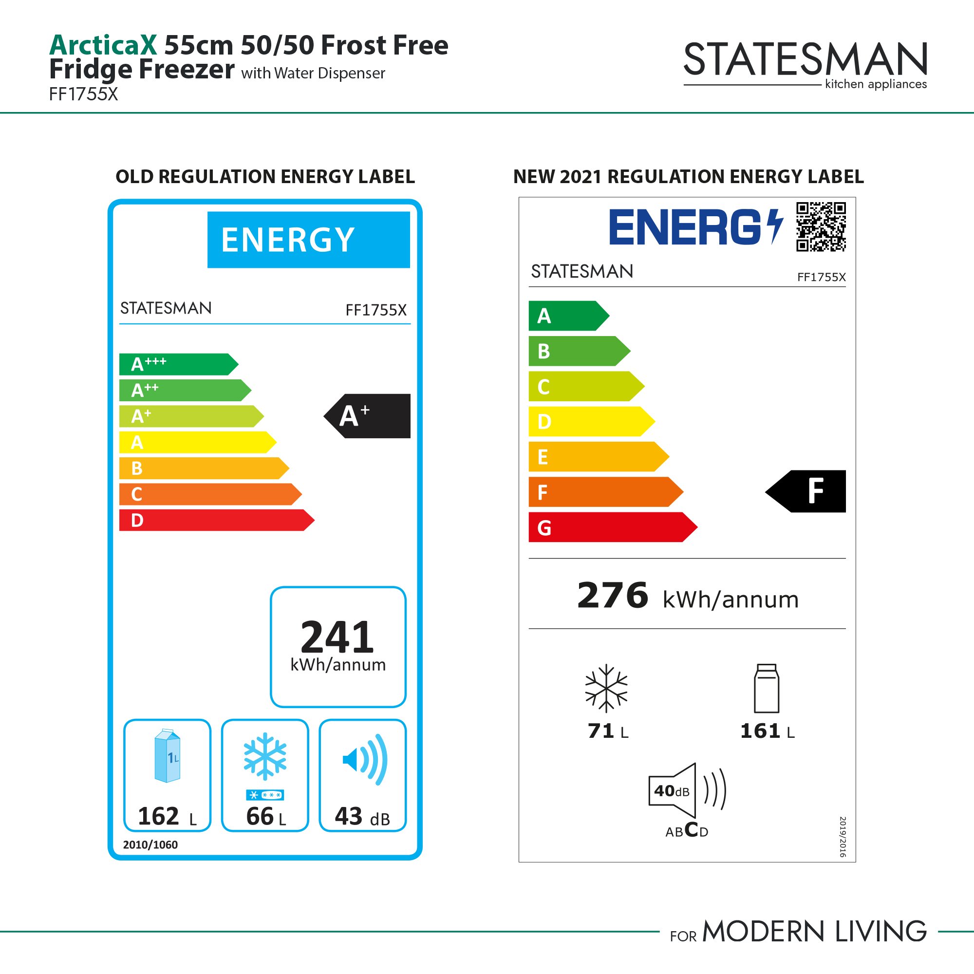 Specification: Statesman FF1755X Frost Free Fridge Freezer 55cm Stainless Steel & water dispenser
